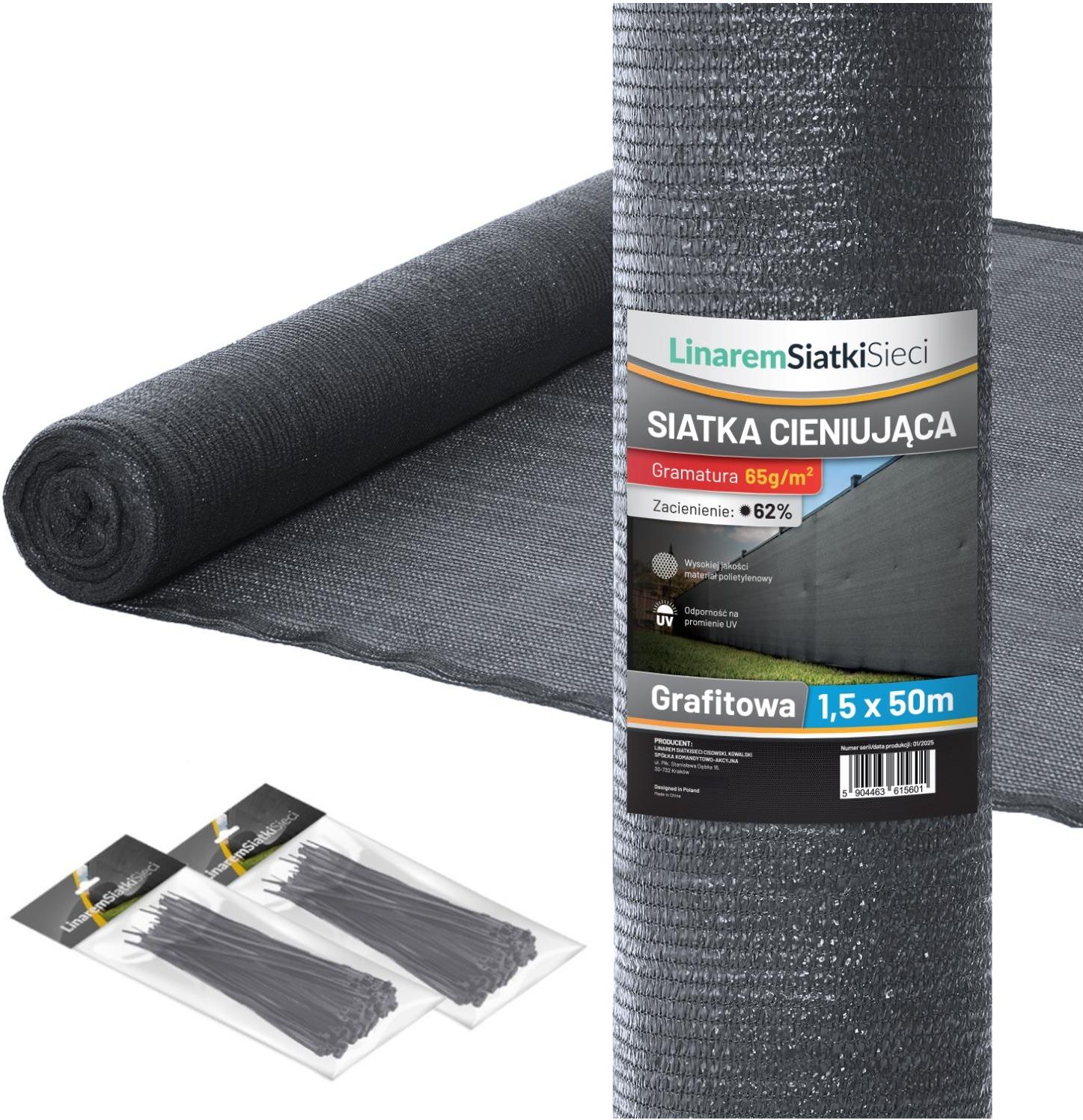 Linarem Siatkisieci Siatka Cieniująca 1,5X50M Osłona Maskująca Na Ogrodzenie Płot 62% Grafitowa Brzesko