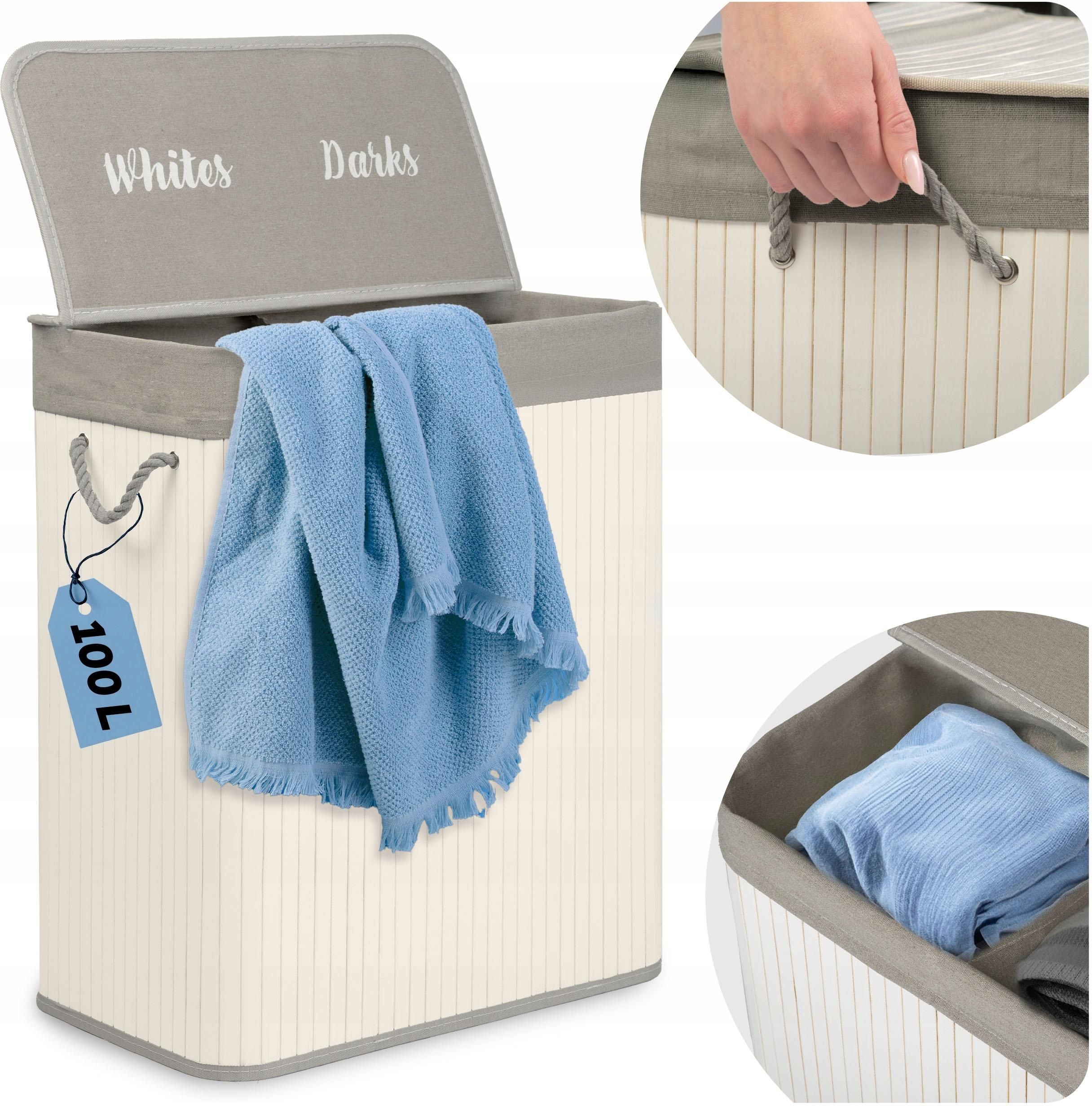 Bambusowy kosz na pranie 2-komorowy 100 l Zorganizuj swoje pranie z klasą! Segregacja 2w1 – oddziel jasne i ciemne pranie już przy wkładaniu. Naturalny bambus – elegancka, trwała konstrukcja odporna na wilgoć. Wyjmowany bawełniany wkład – szybko zwiąż i wrzuć do pralki, bez bałaganu. Kosz 100 l …