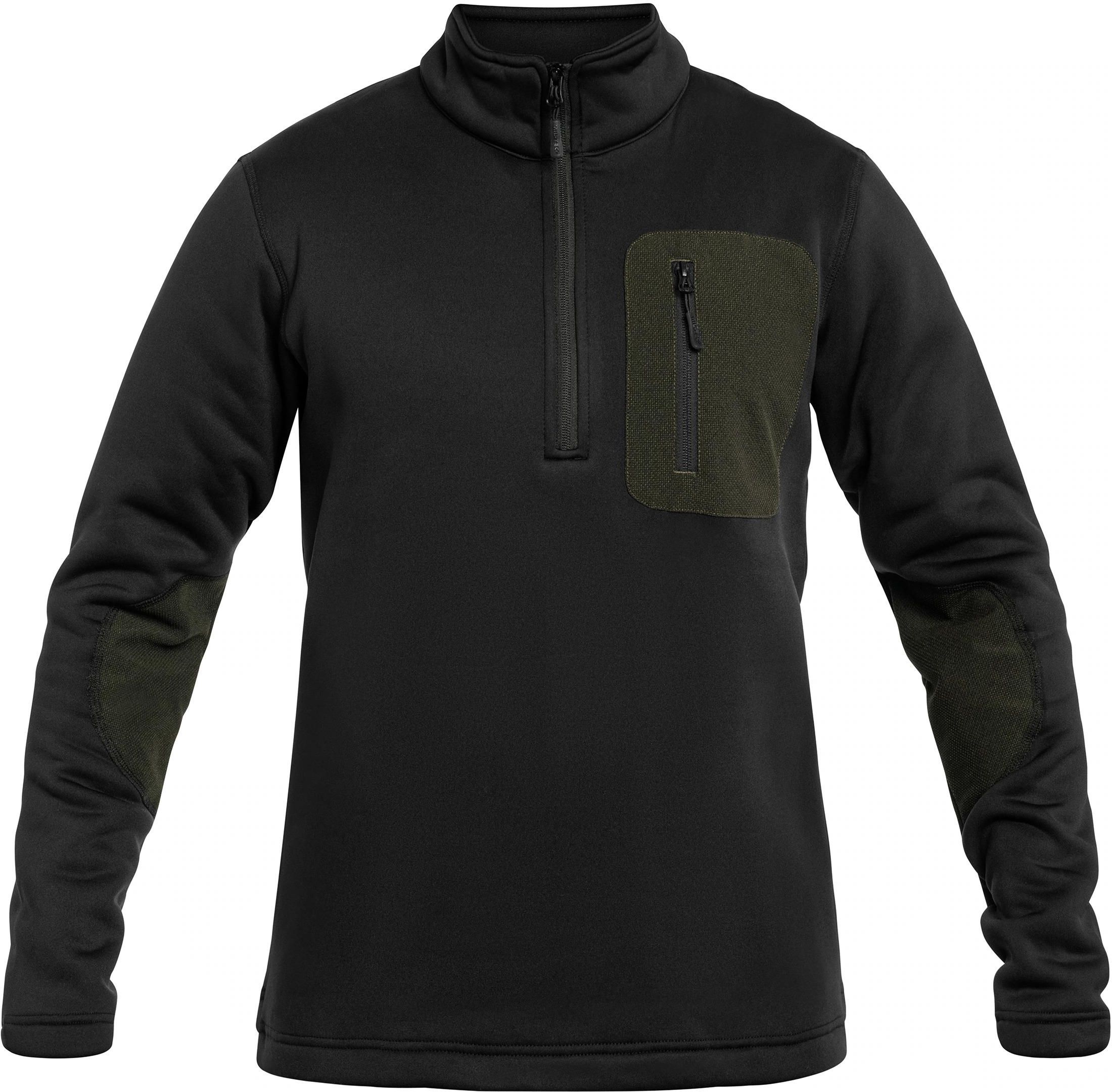 Bluza w kolorze Black wykonana z ciepłego i odpornego na mechacenie materiału o gramaturze 260 g/m2, stanowiącego połączenie trwałego poliestru oraz rozciągliwego elastanu. W newralgicznych miejsach takich jak obszar klatki piersiowej i łokci zastosowano wzmocnienia zwiekszające odporność na uszkodzenia oraz przetarcia.