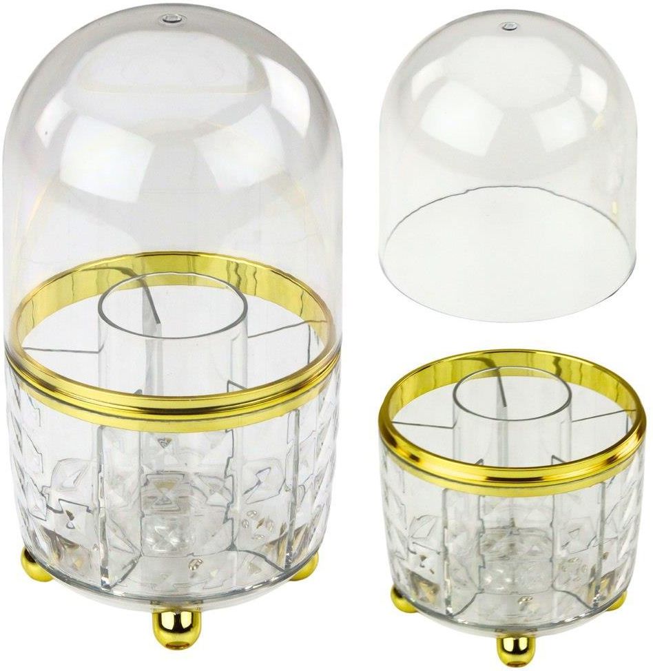 OBROTOWY ORGANIZER NA KOSMETYKI Z OSŁONĄ - PRAKTYCZNY I ELEGANCKI Elegancki organizer z przezroczystą osłoną to stylowe rozwiązanie dla każdej toaletki, biurka lub łazienkowej półki. Wyróżnia się funkcją obrotu 360°, co pozwala na szybkie obracanie pojemnika w celu znalezienia właściwej przegródki. …