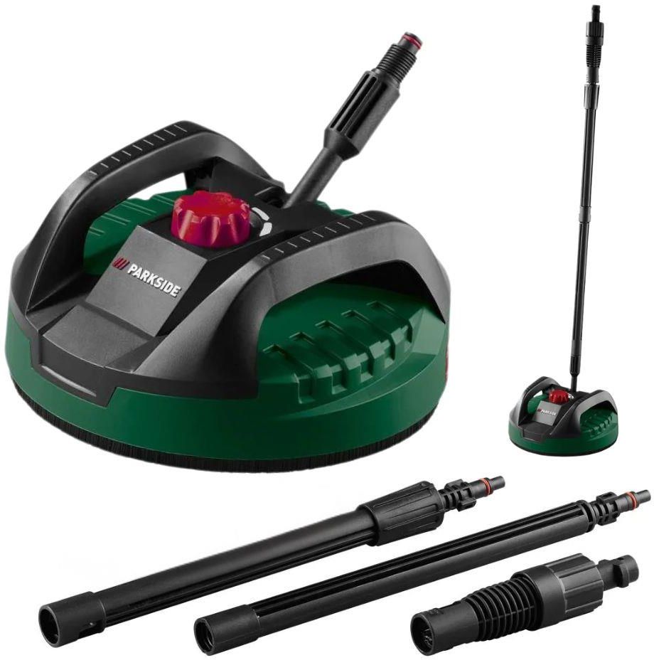 Szczotka do tarasów Parkside PFR 28 B3 Do efektywnego i bezrozbryzgowego czyszczenia powierzchni zewnętrznych Płynna regulacja ciśnienia wody dla delikatnego lub szczególnie silnego czyszczenia Idealna do tarasów, ścieżek, murów, ścian domów lub bram garażowych Cechy i funkcje Najważniejsze funkcje urządzenia czyszczącego PARKSIDE ✅ Płynna regulacja ciśnienia – możliwość dopasowania strumienia wody od delikatnego do bardzo mocnego. ✅ Obrotowy system dysz – zapewnia wysoką skuteczność czyszczenia nawet przy dużych zabrudzeniach. ✅Uniwersalność zastosowania – idealna do tarasów, kostki brukowej, murów, ścian domów czy bram garażowych. Efektywne i komfortowe czyszczenie Urządzenie czyszczące PARKSIDE PFR 28 B3 umożliwia szybkie i bezrozbryzgowe usuwanie brudu z powierzchni zewnętrznych. Dzięki obrotowej głowicy i ślizgowemu włosiu prowadzenie sprzętu jest wygodne i lekkie. Specjalna konstrukcja głowicy z uchwytami pozwala na używanie jej również na powierzchniach pionowych, co czyni ją wszechstronnym narzędziem w codziennych pracach porządkowych. Solidna wydajność i szeroka kompatybilność Sprzęt pracuje z maksymalnym ciśnieniem 180 bar, wydajnością do 450 l/h i temperaturą zasilania do 60°C, co zapewnia skuteczność nawet w przypadku trudnych zabrudzeń. Urządzenie jest kompatybilne z wieloma myjkami wysokociśnieniowymi PARKSIDE (m.in. serii PHD 100*, 110, 135, 150, 170) oraz innymi popularnymi modelami, takimi jak Kärcher** – dzięki dołączonemu adapterowi. Dzielony przewód przyłączeniowy ułatwia przechowywanie, oszczędzając miejsce w garażu czy schowku.* Nie nadaje się do myjki wysokociśnieniowej PARKSIDE PHD 100 (rok produkcji 2009)** Z ciśnieniem roboczym/znamionowym maks. 115 bar Specyfikacja techniczna Producent Parkside Kolor Zielony Maks. temperatura dopływu wody 60°C Ciśnienie maks. 180 bar Wydajność pompy maks. 450 l/h Materiał tworzywo sztuczne Wymiary elementy łączące: ok. dł. 735 mmgłowica czyszcząca: ok. Ø 28 cmadapter: ok. Ø 44 x dł. 182 mm Waga ok. 1,16 kg Zawartość zestawu Szczotka do tarasów Parkside PFR 28 B3 Adapter Instrukcja obsługi Oryginalne opakowanie