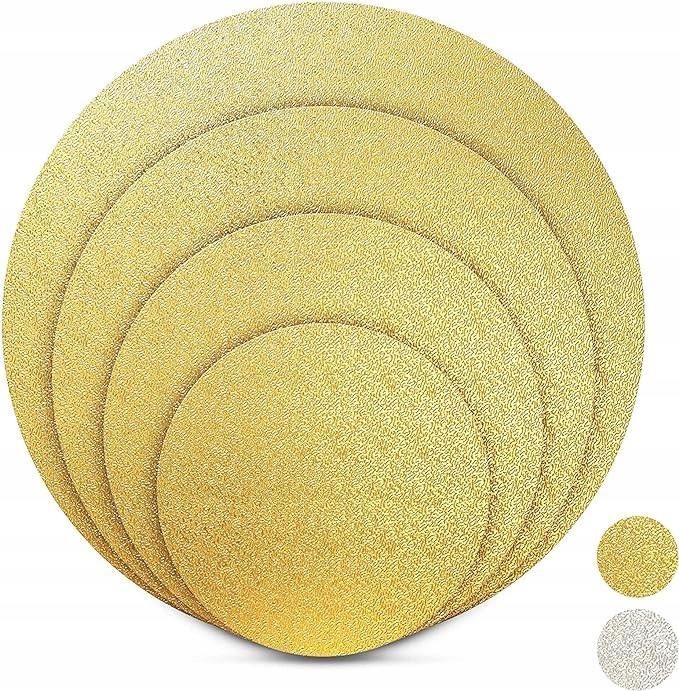 Podkładki pod Tort Okrągłe Zestaw 4 szt Złote Towar powystawowy, outletowy, stoki magazynowe. Urządzenia mogą posiadać opakowania zastępcze lub oryginalne. Podkładka pod tort klasy premium, okrągła, 4 sztuki, ? 15 + 20 + 25 + 30 cm, Nasze deski do ciast są wykonane z przyjaznego dla środowiska …