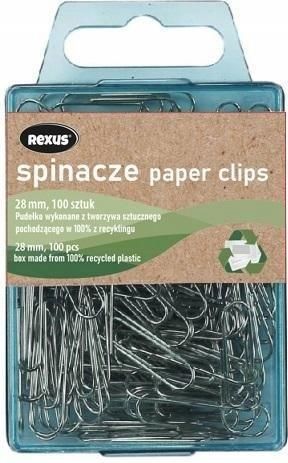 Spinacze biurowe do papieru.Niezbędne w każdym biurze,Do spinania niewielkiej ilości kartek papieru.Rozmiar spinaczy 28mm.W każdym opakowaniu 100szt. spinaczy.spinacze okrągłerozmiar 28 mmPudełko pochodzące 100% z recyklingu.
