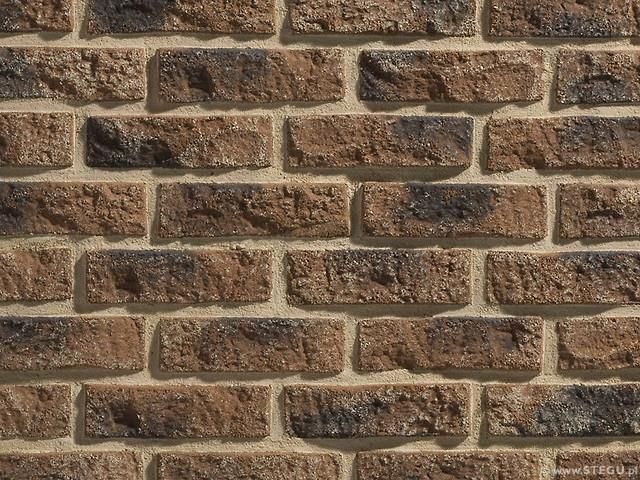 Imitujące starą holenderską cegłę mrozoodporne płytki i narożniki RUSTIK to doskonały materiał przede wszystkim elewacyjny. Ręcznie modelowane, pozwalają na klimatyczne wykończenie elewacji budynków, ogrodzeń i elementów wnętrz. Płytki cegłopodobne RUSTIK nadadzą niepowtarzalny charakter każdej powierzchni. WSKAZÓWKI WYKONAWCZE Przed przystąpieniem do prac należy dokładnie zmierzyć pomieszczenie, obliczyć powierzchnie do wyklejenia i zakupić o 10% więcej materiału oraz odpowiednią ilość gruntu, kleju, fugi w przypadku płytek fugowych oraz impregnatu zabezpieczającego. Jeżeli istnieje możliwość zakupienia narożników do obliczonej ilości należy zakupić o 5% więcej na odpady. Zakupienie jednorazowo potrzebnej ilości wszystkich materiałów daje gwarancje powtarzalności koloru płytek oraz fugi. Różnice w kolorach i rozmiarach pomiędzy elementami w jednym kartonie są celowe i dodają elewacji naturalnego wyglądu. Płytki należy dobierać z kilku kartonów jednocześnie w celu jednolitego rozmieszczenia odcienia. Temperatura otoczenia w trakcie klejenia i 48 godzin po klejeniu, nie powinna być niższa niż +5oC i wyższa niż +25oC. Poszczególne informacje nie mają zastosowania do niektórych typów płytek dla tego należy przed klejeniem dokładnie przeczytać instrukcje na opakowaniu. UWAGA: Firma STEGU nie ponosi odpowiedzialności za nieprawidłowy montaż płytek na ścianie, a reklamacje dotyczące rozmiarów i kolorów po montażu nie będą uwzględniane. PODŁÓŻE Wszystkie podłoża przed klejeniem powinny być właściwie wysezonowane, mieć odpowiednia nośność, stałą i jednolitą strukturę, oraz być równe, suche i oczyszczone z resztek farb, środków antyadhezyjnych i smarów - powłoki niestabilne należy usunąć. Przed klejeniem należy ścianę w miarę potrzeby wyrównać zaprawą wyrównującą. Podłoże należy zagruntować środkiem np. STEGU Grunt. Podłoże musi być dostatecznie stabilne, przenoszące obciążenia jak np. ściany wykonane z betonu, gazobetonu, cegły, bloczków typu „Ytong” itp. KLEJENIE Na powierzchni należy nakreślić linię określającą POZIOM BAZOWY, w przypadku pełnej elewacji należy wykreślić linie zamkniętą wokół całego domu. Od niego będziemy rysować linie pomocnicze poziome i pionowe. Wyklejanie należy rozpoczynać od wyklejenia narożników, lub miejsc najbardziej widocznych – unikając nieładnych łączeń w miejscach reprezentacyjnych. Klejenie rozpoczynamy przyklejając co drugi rząd płytek:Następnie uzupełniamy puste rzędy utrzymując przesuniecie (w prawo, lewo) miedzy rzędami sąsiadującymi o co najmniej 10 cm dla zamaskowania łączeń. Rysujemy poziome linie na ścianie o odległość równą:2 x wysokość płytki + 2 x grubość fugi (zalecana 10 mm). Na ścianach dłuższych niż 5 metrów nakreśla się również linie kontrolne pionowe w odległości co: 4 x długość płytki + 4 x grubość fugi (zalecana 10 mm). Kleimy płytki wzdłuż linii. Cięcie płytek można wykonywać szlifierką kątową. Klej np. STEGU ELASTIK nanosimy szpachelką w zależności od długości płytki w 2-3 miejscach. Wszystkie płytki układane na zewnątrz oraz w miejscach trwale wilgotnych, powinny być przyklejane za pomocą pacy zębatej na ścianę (poziomo) i równocześnie na płytkę (pionowo) tak aby nałożony klej przy układaniu płytek „się krzyżował”. Klejenie tą metodą zwiększa przyczepność, zapobiega przedostawaniu się wody szczególnie przy zastosowaniu klejów proszkowych. Szczegółowe instrukcje na opakowaniu kleju. Następnie dociskamy płytkę lekko nią poruszając do momentu równomiernego rozprowadzenia się kleju. Nadmiar kleju usuwamy. FUGOWANIE Po całkowitym wyschnięciu kleju (w przypadku całej elewacji ok. 14 dni po zakończeniu klejenia) nanosimy fugę w szczeliny pomiędzy płytkami zgodnie z instrukcją na opakowaniu fugi. Najlepszy efekt uzyskuje się z fugą o grubości mniejszej niż grubości płytki. W celu zachowania jednolitego koloru fugowanie jednej ściany najlepiej wykonywać w tym samym dniu lub przy tej samej pogodzie. Fuga nałożona uzyskuje wytrzymałość po co najmniej 21 dniach - szczegółowe instrukcje na opakowaniu fugi. KONSERWACJA Po dokładnym wyschnięciu (ok. 14 dni), należy zabezpieczyć ścianę na całej powierzchni środkiem ułatwiającym utrzymanie czystości elewacji np. STEGU ŻYWY KOLOR DO KAMIENIA (COUNTRY), STEGU ŻYWY KOLOR (RUSTIK i DF/NF) metodą natryskową.