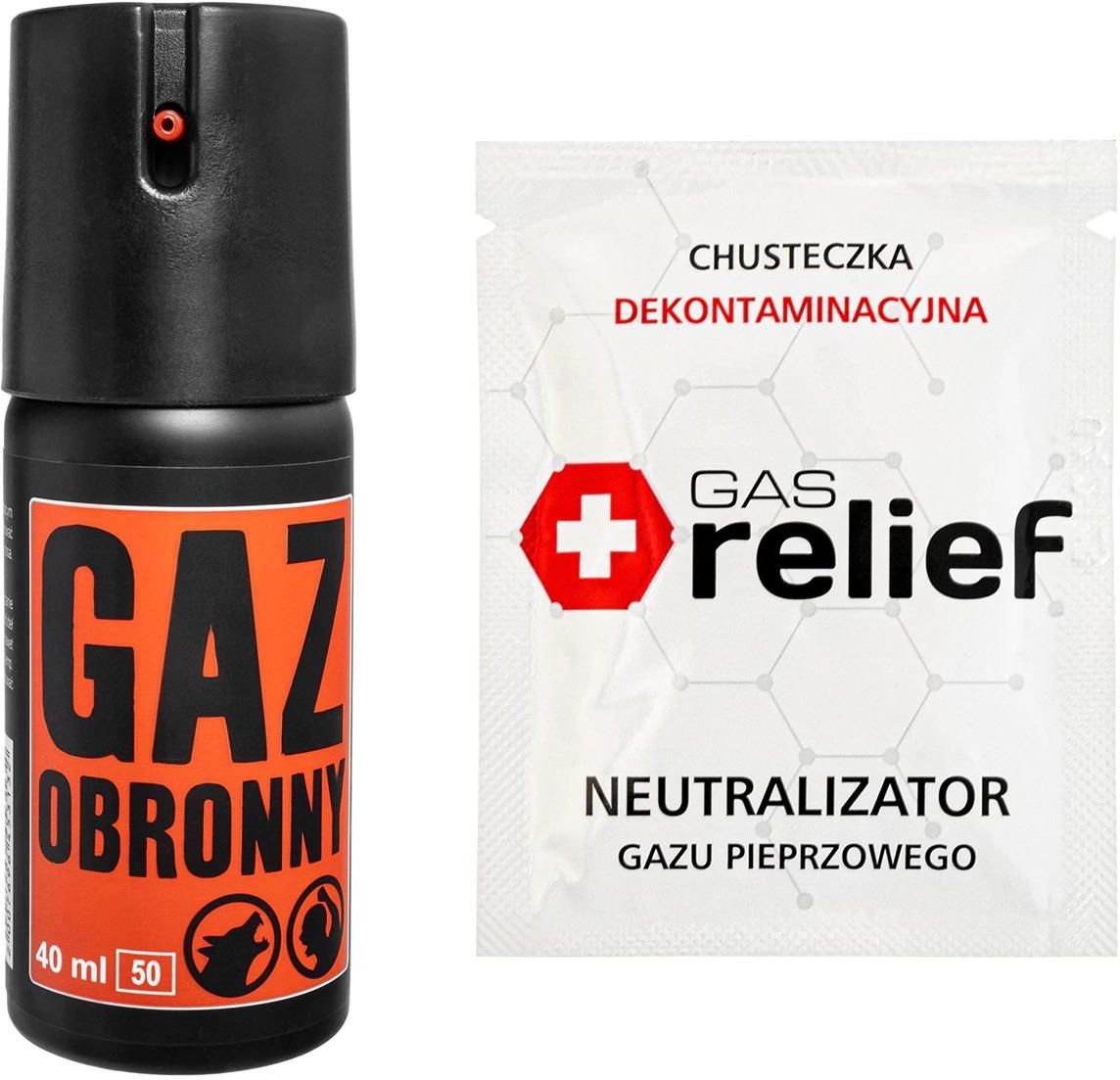 Tm Gaz Pieprzowy Obronny 50ml Stożek + Chusteczka Neutralizująca Gas Relief Zestaw Brzesko