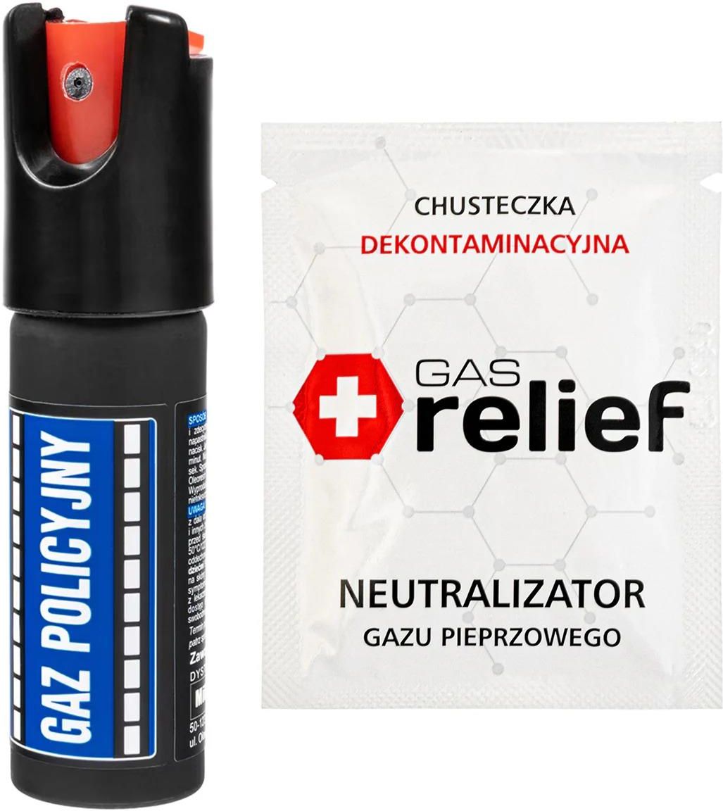Tm Gaz Pieprzowy Policyjny 15ml Stożek + Chusteczka Neutralizująca Gas Relief Zestaw Brzesko
