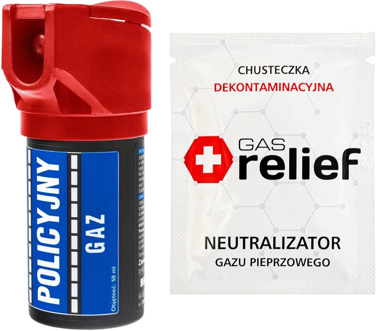 Tm Gaz Pieprzowy Policyjny Red 50ml Strumień + Chusteczka Neutralizująca Gas Relief Zestaw Brzesko