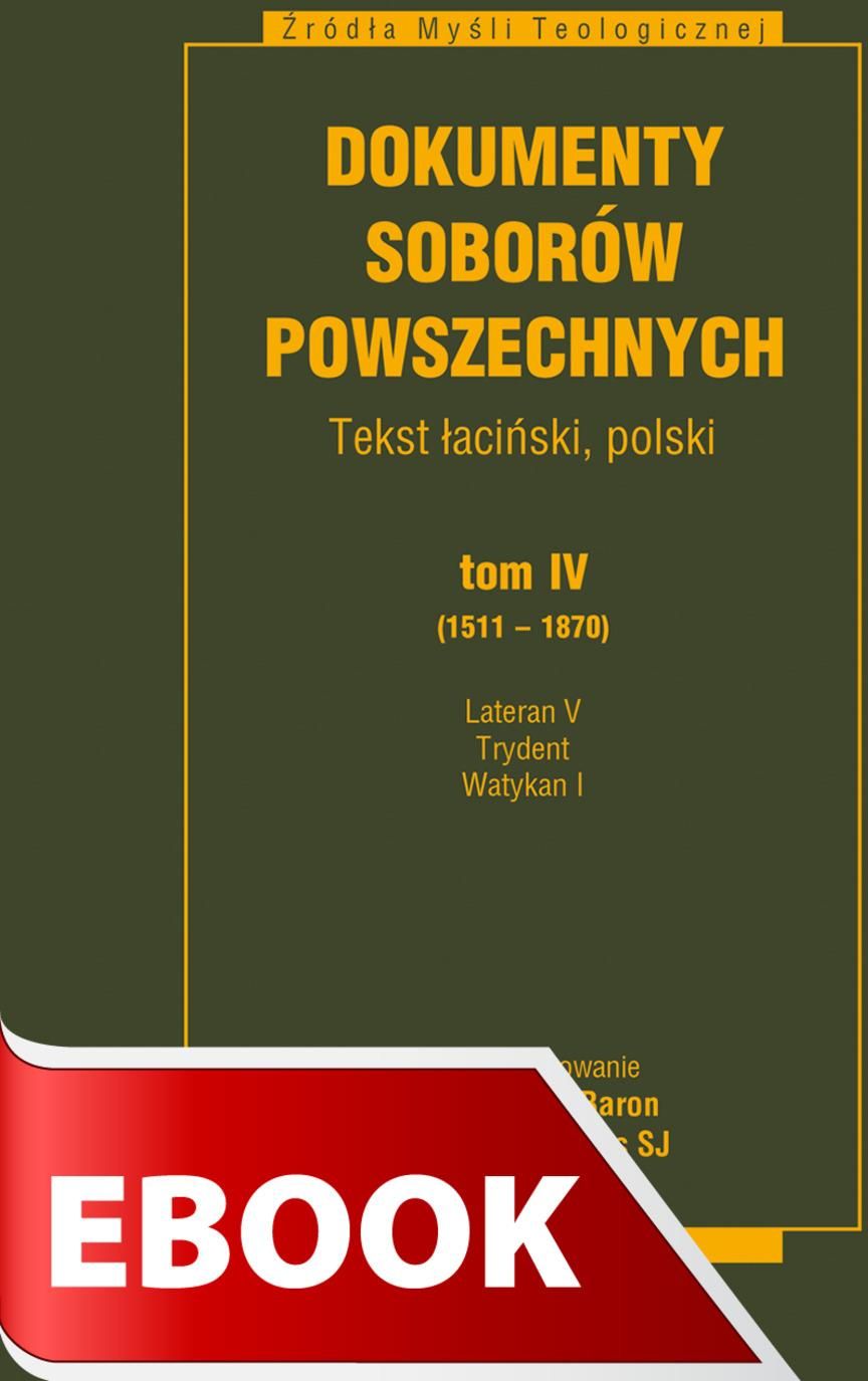 Tom IV Dokumentów Soborów Powszechnych przedstawia akta Soboru Laterańskiego V, Soboru Trydenckiego i Soboru Watykańskiego I. Sobory te wpłynęły w decydujący sposób na kształt Kościoła współczesnego. Sobór Trydencki był największym soborem "dogmatycznym", starał się ustalić nauczanie Kościoła we …
