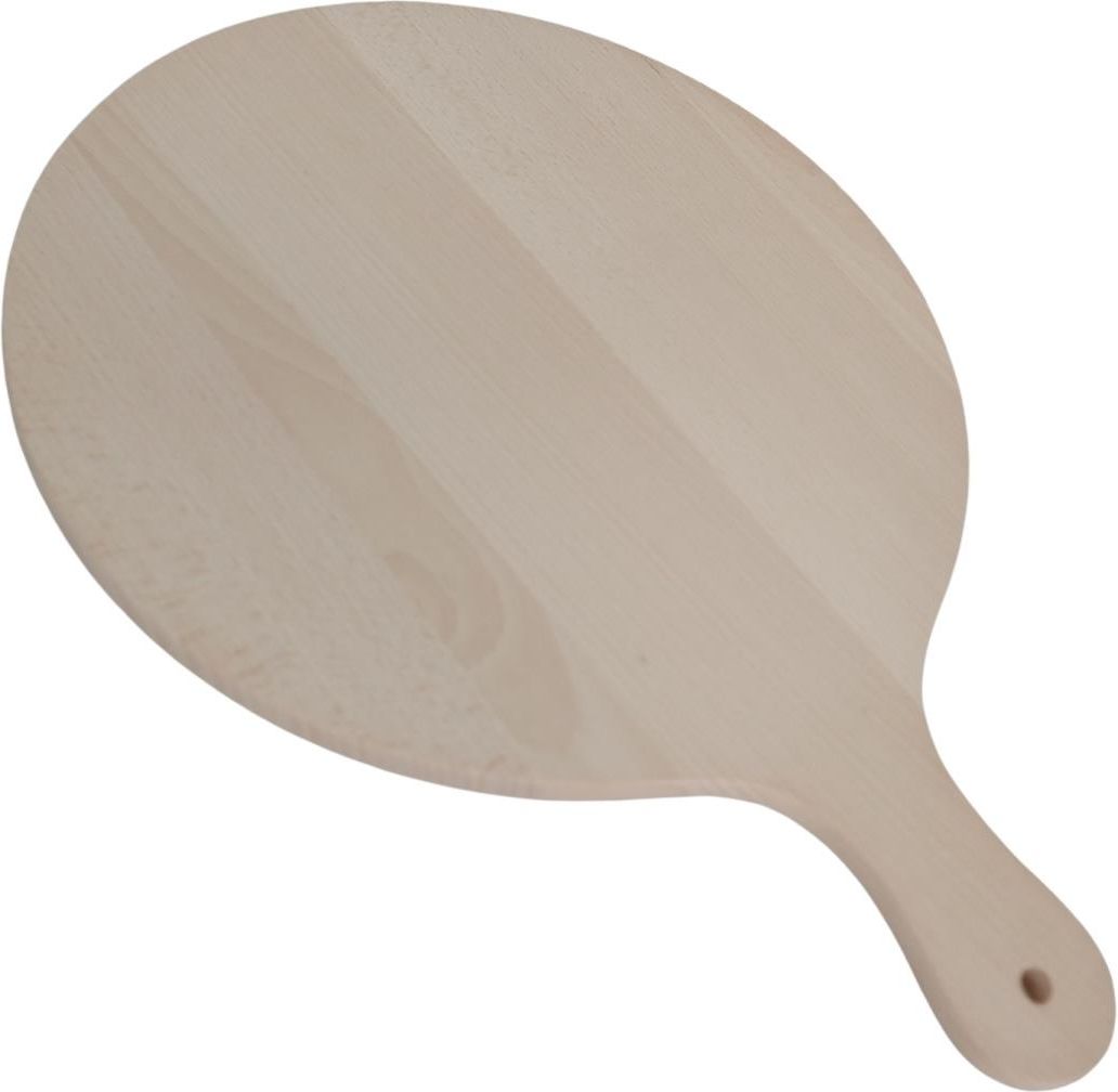 Okrągła Deska Do Pizzy z Rączką "Pizzella" Okrągła Deska Do Pizzy Z Rączką "Pizzella" to doskonały dodatek do każdej kuchni, który łączy funkcjonalność z estetyką. Wykonana z najwyższej jakości drewna bukowego, jest idealna do serwowania pizzy, serów, wędlin i innych przysmaków. Specyfikacja produktu Materiał: drewno bukowe Średnica ok: 37,5-38 cm Grubość deski ok: 1,3 cm Maksymalna długość z rączką: 51 cm Korzyści i cechy Wszechstronność: "Pizzella" świetnie sprawdza się zarówno w domowych warunkach, jak i w profesjonalnych restauracjach i pizzeriach. Dzięki rączce deska jest wygodna w trzymaniu i noszeniu, co ułatwia serwowanie dań. Estetyka: Naturalne drewno bukowe nadaje desce elegancki wygląd, czyniąc ją idealną ozdobą kuchenną lub stylowym elementem na stole. Trwałość: Drewno bukowe jest znane ze swojej wytrzymałości, dzięki czemu deska posłuży przez długi czas przy odpowiedniej pielęgnacji. Uniwersalność: Możliwość wykorzystania deski do serwowania różnych potraw, od pizzy po sery i przekąski, sprawia, że jest ona niezwykle funkcjonalna. Dla kogo okrągła deska do pizzy z rączką? Deska do pizzy "Pizzella" to idealny wybór dla miłośników pizzy, szefów kuchni, a także osób szukających eleganckiego i praktycznego prezentu dla bliskich. Doskonale sprawdzi się jako upominek dla koneserów kulinarnych doznań. Jak używać i dbać o deskę pod pizze Aby cieszyć się "Pizzellą" jak najdłużej, pamiętaj o kilku zasadach: Nie myj w zmywarce: Deska z drewna bukowego nie powinna być myta w zmywarce, ponieważ może to prowadzić do jej uszkodzenia. Unikaj moczenia: Myj deskę wilgotną szmatką, a następnie dokładnie wytrzyj do sucha. Impregnacja: Po kilku użyciach ponownie zaimpregnuj deskę olejem, aby utrzymać jej trwałość i wygląd. Ochrona przed gorącem: Staraj się nie kłaść gorących potraw bezpośrednio na deskę, aby uniknąć uszkodzeń. Plamy: Pamiętaj, że niektóre potrawy, zwłaszcza kolorowe i wilgotne warzywa, mogą wchodzić w interakcję z drewnem i pozostawiać plamy. Odpowiednie warunki: Drewno bukowe reaguje na temperaturę i wilgotność otoczenia, dlatego zapewnij desce odpowiednie warunki, aby uniknąć wypaczenia, zeschnięcia czy pęknięcia. Zapewnij swojej kuchni odrobinę elegancji i funkcjonalności dzięki Okrągłej Desce Do Pizzy Z Rączką "Pizzella". Zamów już dziś i ciesz się serwowaniem pizzy w najlepszym stylu!