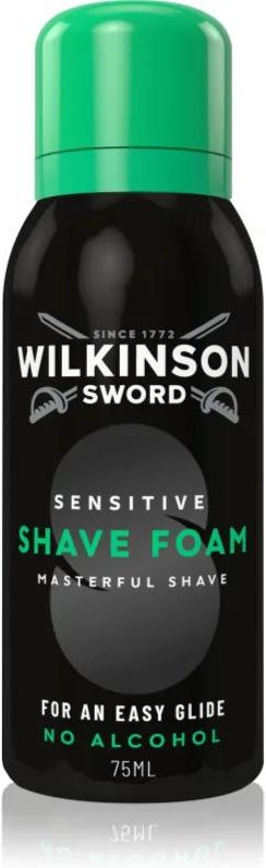 Wilkinson Sword Sensitive Shave Foam, 75 ml, Produkty do golenia dla mężczyzn, Preparat do golenia Wilkinson Sword Sensitive zapewnia całkowicie bezproblemowy przebieg rutynowego golenia. Właściwości: umożliwia łatwe golenie działa łagodząco na skórę nawilża skórę i jej nie wysusza przyjemnie odświeża zapewnia maksymalnie gładkie golenie Skład: produkt wegański Sposób użycia: Nakładaj na wilgotną skórę. Nakładaj przed goleniem.