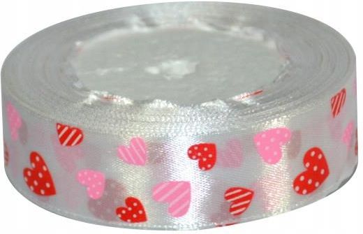 Wstążka serca walentynki biała 25MM/22MB Brzesko