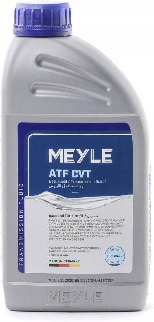 OLEJ ATF CVT 1L / VW G 052 516/052 180 / Numer części: 014 019 3000 Parametry: Pojemność [litr]: 1 Specyfikacja: Honda HMMF Specyfikacja: VW G 052 516 Specyfikacja: VW G 052 180 Specyfikacja: Suzuki CVT Geen 1/2 Specyfikacja: Suzuki NS-2 Specyfikacja: Suzuki TC Specyfikacja: Lineatronik CVTF Specyfikacja: Subaru NS-2 Specyfikacja: Toyota TC Specyfikacja: Nissan NS-2/NS-3 Specyfikacja: CVT Fluid J4 Specyfikacja: CVT Fluid J1 Specyfikacja: Mitsubishi NS-2 Specyfikacja: MB 236.20 Specyfikacja: Kia CVTF Specyfikacja: Hyundai CVTF Specyfikacja: GM /Saturn DEX-CVT Specyfikacja: Ford Mercon C Specyfikacja: Ford CVT30 Specyfikacja: Ford CVT23 Specyfikacja: Jeep CVTF+4 Specyfikacja: Jeep NS-2 Specyfikacja: Amix CVTF-DFE Specyfikacja: Amix CVTF-DC Specyfikacja: Daihatsu TC Specyfikacja: BMW EZL799 Specyfikacja: ATF CVT Specyfikacja: HONDA CVT FLUID HCF2 Specyfikacja: BMW ATF 5 Specyfikacja: Renault ELFMATIC Specyfikacja: FORD WSS-M2C928-A Specyfikacja: DiaQueen SP-III Specyfikacja: TOYOTA CVT TC/FE Specyfikacja: Suzuki CVTF Specyfikacja: Subaru CVTF Lineatr. Specyfikacja: DiaQueen CVT J1/J4 Rodzaj skrzyni biegów: skrzynia automat. bezstopniowa (CVT) Kolor: naturalny Rodzaj połączenia: Butelka Kod: 014 019 3000 Producent: MEYLE GenArtName: Olej do automatycznej skrzyni biegów EAN: 4040074108888 Zastosowanie AUDI A6 C5 (4B2) AUDI A6 C5 (4B2) 1.8 T 01.1997 - 01.2005 110kW / 150KM AUDI A6 C5 (4B2) 1.8 T quattro 02.1997 - 01.2005 110kW / 150KM AUDI A6 C5 (4B2) 2.4 02.1997 - 01.2005 121kW / 165KM AUDI A6 C5 (4B2) 2.4 quattro 02.1997 - 01.2005 121kW / 165KM AUDI A6 C5 (4B2) 1.9 TDI 04.1997 - 10.2000 81kW / 110KM AUDI A6 C5 (4B2) 2.5 TDI 07.1997 - 01.2005 110kW / 150KM AUDI A6 C5 (4B2) 2.8 02.1997 - 01.2005 142kW / 193KM AUDI A6 C5 (4B2) 2.8 quattro 02.1997 - 01.2005 142kW / 193KM AUDI A6 C5 (4B2) 2.5 TDI quattro 07.1997 - 01.2005 110kW / 150KM AUDI A6 C5 (4B2) 1.8 07.1997 - 01.2005 92kW / 125KM AUDI A6 C5 (4B2) 2.7 T 02.1999 - 01.2005 169kW / 230KM AUDI A6 C5 (4B2) 2.7 T quattro 12.1997 - 01.2005 169kW / 230KM AUDI A6 C5 (4B2) 1.8 T quattro 12.1997 - 01.2005 132kW / 180KM AUDI A6 C5 (4B2) 2.4 07.1998 - 01.2005 100kW / 136KM AUDI A6 C5 (4B2) 3.7 03.1999 - 01.2005 191kW / 260KM AUDI A6 C5 (4B2) 4.2 quattro 11.1998 - 01.2005 220kW / 299KM AUDI A6 C5 (4B2) 3.7 quattro 03.1999 - 01.2005 191kW / 260KM AUDI A6 C5 (4B2) 1.8 T 12.1997 - 01.2005 132kW / 180KM AUDI A6 C5 (4B2) 2.5 TDI 02.2000 - 01.2005 132kW / 180KM AUDI A6 C5 (4B2) 2.5 TDI quattro 02.2000 - 01.2005 132kW / 180KM AUDI A6 C5 (4B2) 1.9 TDI 07.2000 - 01.2005 85kW / 115KM AUDI A6 C5 (4B2) 2.8 10.1997 - 05.2000 132kW / 180KM AUDI A6 C5 (4B2) 2.8 07.1999 - 01.2005 140kW / 190KM AUDI A6 C5 (4B2) 2.4 02.1997 - 01.2005 115kW / 156KM AUDI A6 C5 (4B2) 2.0 08.2001 - 01.2005 96kW / 130KM AUDI A6 C5 (4B2) 3.0 08.2001 - 01.2005 162kW / 220KM AUDI A6 C5 (4B2) 3.0 quattro 08.2001 - 01.2005 162kW / 220KM AUDI A6 C5 (4B2) 2.4 08.2001 - 01.2005 125kW / 170KM AUDI A6 C5 (4B2) 2.4 quattro 08.2001 - 01.2005 125kW / 170KM AUDI A6 C5 (4B2) 2.5 TDI 08.2001 - 01.2005 114kW / 155KM AUDI A6 C5 (4B2) 2.7 T quattro 08.2001 - 01.2005 184kW / 250KM AUDI A6 C5 (4B2) 1.9 TDI 08.2001 - 01.2005 96kW / 130KM AUDI A6 C5 (4B2) 2.4 02.1997 - 01.2005 120kW / 163KM AUDI A6 C5 (4B2) 2.4 quattro 02.1997 - 01.2005 120kW / 163KM AUDI A6 C5 (4B2) 2.5 TDI 07.2002 - 01.2005 120kW / 163KM AUDI A6 C5 (4B2) 2.4 quattro 08.1998 - 07.1999 115kW / 156KM AUDI A6 C5 (4B2) 2.8 quattro 07.1999 - 05.2001 140kW / 190KM AUDI A6 C5 Avant (4B5) AUDI A6 C5 Avant (4B5) 1.9 TDI 02.1998 - 04.2001 81kW / 110KM AUDI A6 C5 Avant (4B5) 1.8 12.1997 - 01.2005 92kW / 125KM AUDI A6 C5 Avant (4B5) 2.8 quattro 12.1997 - 01.2005 142kW / 193KM AUDI A6 C5 Avant (4B5) 1.8 T 12.1997 - 01.2005 110kW / 150KM AUDI A6 C5 Avant (4B5) 2.4 12.1997 - 01.2005 121kW / 165KM AUDI A6 C5 Avant (4B5) 2.8 12.1997 - 01.2005 142kW / 193KM AUDI A6 C5 Avant (4B5) 1.8 T quattro 12.1997 - 01.2005 110kW / 150KM AUDI A6 C5 Avant (4B5) 2.4 quattro 12.1997 - 01.2005 121kW / 165KM AUDI A6 C5 Avant (4B5) 2.5 TDI 12.1997 - 01.2005 110kW / 150KM AUDI A6 C5 Avant (4B5) 2.5 TDI quattro 12.1997 - 01.2005 110kW / 150KM AUDI A6 C5 Avant (4B5) 2.7 T 02.1999 - 01.2005 169kW / 230KM AUDI A6 C5 Avant (4B5) 2.7 T quattro 12.1997 - 01.2005 169kW / 230KM AUDI A6 C5 Avant (4B5) 2.4 07.1998 - 01.2005 100kW / 136KM AUDI A6 C5 Avant (4B5) 1.8 T quattro 12.1997 - 01.2005 132kW / 180KM AUDI A6 C5 Avant (4B5) 3.7 quattro 03.1999 - 01.2005 191kW / 260KM AUDI A6 C5 Avant (4B5) 3.7 03.1999 - 01.2005 191kW / 260KM AUDI A6 C5 Avant (4B5) 4.2 quattro 11.1998 - 01.2005 220kW / 299KM AUDI A6 C5 Avant (4B5) 1.8 T 04.1999 - 01.2005 132kW / 180KM AUDI A6 C5 Avant (4B5) 2.5 TDI 02.2000 - 01.2005 132kW / 180KM AUDI A6 C5 Avant (4B5) 2.5 TDI quattro 02.2000 - 01.2005 132kW / 180KM AUDI A6 C5 Avant (4B5) 1.9 TDI 07.2000 - 01.2005 85kW / 115KM AUDI A6 C5 Avant (4B5) 2.8 12.1997 - 05.2000 132kW / 180KM AUDI A6 C5 Avant (4B5) 2.8 07.1999 - 01.2005 140kW / 190KM AUDI A6 C5 Avant (4B5) 2.4 12.1997 - 01.2005 115kW / 156KM AUDI A6 C5 Avant (4B5) 2.0 08.2001 - 01.2005 96kW / 130KM AUDI A6 C5 Avant (4B5) 2.4 08.2001 - 01.2005 125kW / 170KM AUDI A6 C5 Avant (4B5) 2.4 quattro 08.2001 - 01.2005 125kW / 170KM AUDI A6 C5 Avant (4B5) 2.5 TDI 08.2001 - 01.2005 114kW / 155KM AUDI A6 C5 Avant (4B5) 2.7 T quattro 08.2001 - 01.2005 184kW / 250KM AUDI A6 C5 Avant (4B5) 3.0 08.2001 - 01.2005 162kW / 220KM AUDI A6 C5 Avant (4B5) 3.0 quattro 08.2001 - 01.2005 162kW / 220KM AUDI A6 C5 Avant (4B5) 1.9 TDI 08.2001 - 01.2005 96kW / 130KM AUDI A6 C5 Avant (4B5) 2.4 12.1997 - 01.2005 120kW / 163KM AUDI A6 C5 Avant (4B5) 2.4 quattro 12.1997 - 01.2005 120kW / 163KM AUDI A6 C5 Avant (4B5) 2.5 TDI 07.2002 - 01.2005 120kW / 163KM AUDI A6 C5 Avant (4B5) 2.4 quattro 08.1998 - 05.2001 115kW / 156KM AUDI A4 B6 (8E2) AUDI A4 B6 (8E2) 1.8 T 11.2000 - 07.2002 110kW / 150KM AUDI A4 B6 (8E2) 2.0 11.2000 - 12.2004 96kW / 130KM AUDI A4 B6 (8E2) 3.0 11.2000 - 12.2004 162kW / 220KM AUDI A4 B6 (8E2) 1.9 TDI 11.2000 - 12.2004 96kW / 