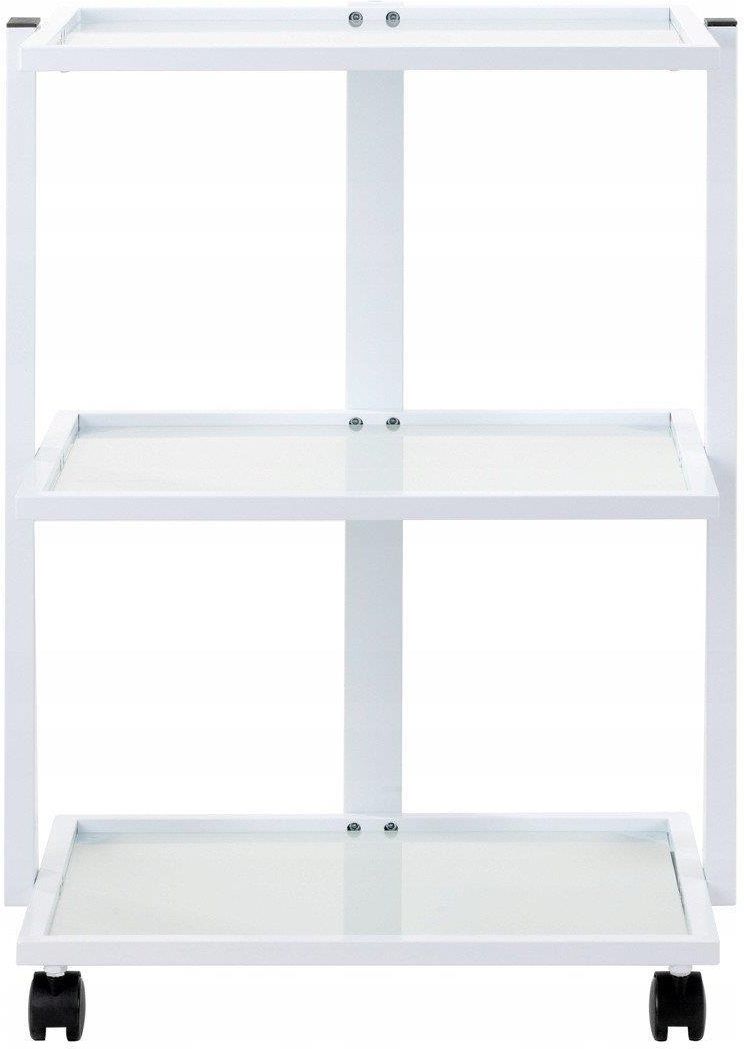 Giovanni to marka specjalizująca się w praktycznym wyposażeniu salonów kosmetycznych i urody, oferująca między innymi meble kosmetyczne i wapozony. Wysoka trwałość, ergonomia oraz funkcjonalność produktów zapewniają użytkownikom wygodę oraz komfort pracy. Praktyczny, kompaktowy pomocnik Stolik kosmetyczny Giovanni E40 to funkcjonalny mebel, idealny do salonów kosmetycznych i gabinetów SPA. Stabilna, a jednocześnie lekka konstrukcja zapewnia komfort pracy i łatwość manewrowania. Trzy szklane półki umożliwiają wygodną organizację kosmetyków, akcesoriów oraz sprzętu niezbędnego do zabiegów. Minimalistyczne wykończenie podkreśla profesjonalny charakter stolika. Design dla maksymalnej funkcjonalności Prosta konstrukcja, stelaż z trwałego aluminium w odcieniach bieli oraz szklane półki łączą elegancję z praktycznością, zapewniając wytrzymałość i stabilność mebla. Gładkie powierzchnie ułatwiają utrzymanie stolika w czystości, a cztery kółka umożliwiają jego swobodne przestawianie, co zwiększa komfort pracy w salonie. Eleganckie wykończenie podkreśla profesjonalny charakter wnętrza. Na ramie stolika znajduje się specjalne miejsce, umożliwiające prosty montaż profesjonalnej lampy-lupy. Wymiary zostały podane na zdjęciu. Kolor: odcienie bieli