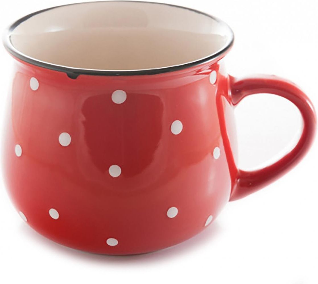 Ceramiczny kubeczek do espresso czerwony w białe kropki imitujący emalię. Pojemność kubka 75 ml. Kubeczek ma kształt beczułki. Połączenie czerwieni z bielą to zawsze dobry wybór. Wzór ten idealnie wkomponuje się do każdej kuchni. Ciekawy pomysł wzoru na kubku sprawia, że może on być doskonałym pomysłem na prezent. Idealny dla fanów prawdziwego espresso. Można stosować w kuchence mikrofalowej i zmywarce. Wzór: czerwony w kropki Produkt 1 x kubek do espresso Wymiary pojemność całkowita kubka: 75 ml pojemność użytkowa kubka: około 65 ml wysokość: 5 cm średnica: 5,6 cm Materiał ceramika Użytkowanie dopuszczone do kontaktu z żywnością