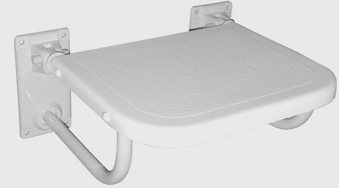 RK N siedzisko ERGOPLUS natryskowe malowane proszkowo, kolor biały Zastosowanie Do instalowania pod natryskami Materiał: rura stalowa kalibrowana ze szwem 25 mm, pokryta podkładem epoksydowo-cynkowym i malowana proszkowo Gruba powłoka lakiernicza 120 Mm, podkład epoksydowo-cynkowy zapewniają bardzo wysoką odporność na czynniki korozyjne Komfortowy wymiar siedzenia pokrytego „ciepłym” polimerem grubości 4 mm Dwunstopunktowy montaż podstaw mocujących i spawy wykonane w technologii TIG zapewniają najwyższą wytrzymałość Mechanizm regulacji siły podnoszenia / opuszczania siedziska Nieopadające siedzisko – pozostaje w pozycji ustawionej przez użytkownika Siedzisko testowane przy obciążeniu 300 kg, zalecane maksymalne obciążenie użytkownika: 180 kg W komplecie śruby i zaślepki do montażu na ścianie pełnej Akcesoria dodatkowe: polimerowe oparcie naścienne do siedziska nr kat RKN-O, 270×440 mm RK N O opcjonalne oparcie polimer, kolor biały