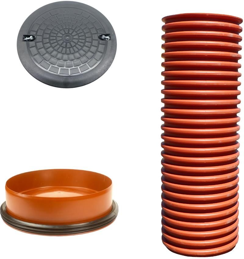 Zestaw zawiera: - Rura trzonowa 425 - 1,0 mb - Pokrywa 315 klasa A15 - Dno 425 z uszczelką Rura trzonowa karbowana wykonana jest z polipropylenu (PP) odpornego na związki chemiczne, uderzenia oraz na niskie i wysokie temperatury. Jest jednym z elementów studzienki rewizyjnej tworzywowej 425 kanalizacyjnej lub drenarskiej. Stanowią również element łączący podstawę z rurą teleskopową. Rura trzonowa wykonana jest metoda wtryskową z polipropylenu PP, może być przycinana za pomocą piły ręcznej lub mechanicznej. - Średnica wewnętrzna rury: 425 mm - Średnica zewnętrzna rury: 472 mm - Długość odcinka: 100 cm Pokrywa wykonana z polipropylenu PP na rurę wznoszącą karbowaną to wysokiej jakości produkt, wykonany z materiału odpornego na działania niekorzystnych warunków zewnętrznych, w tym na działanie promieni UV. Wytrzymuje ciężar nacisku do 1,5 tony - klasa A15. Pokrywy stosuje się jako zwieńczenie studzienek kanalizacyjnych w miejscach przeznaczonych wyłącznie dla ruchu pieszego i rowerzystów. Dno wykonane z polipropylenu PP. Otwory pod rurę drenażową do wycięcia we własnym zakresie. Możliwośc dokupienia uszczelki in-situ do drenażu.