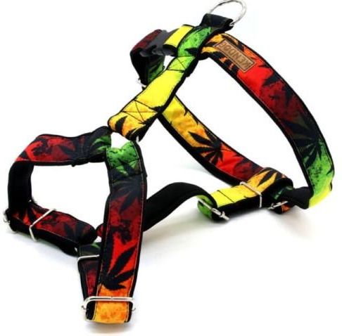 Szelki guard Reggae L SZELKI GUARD HANDMADE Reggae L Własnoręcznie szyte szelki guard Reggae to nie tylko wygoda dla Twojego pupila, ale również niesamowity design. Szelki dostępne są w trzech rozmiarach. Wszystkie okucia metalowe są pokryte niklem, dzięki czemu nie ulegną korozji. Dzięki neoprenowi, którym podszyte są szelki, Twój pies będzie miał najwyższy komfort z użytkowania. Szelki regulowane są w czterech miejscach – na obręczy barkowej, piersiowej oraz na mostku. Konstrukcja szelek guard rozkłada ciężar psa na całej jego powierzchni, dzięki czemu nieobciążany jest kręgosłup naszego czworonoga. Dzięki użytym materiałom szelki nadają się idealnie na każdą porę roku – są szybkoschnące i brudoodporne ! Brudo i wodoodporna tkanina Niesamowity design szelek uzyskaliśmy dzięki tkaninie. Tkanina ta jest wodoodporna i ma zwiększoną odporność na tarcie. Dzięki strukturze i powłoce bardzo łatwo się czyści, co czyni ją mianem brudoodpornej. Idealne połączenie dla psiaków, które lubią się wytaplać w błocie czy popływać w jeziorze. W rezultacie uzyskujemy nie tylko super wygląd, ale także użyteczność. Nici kaletnicze Do szycia używamy nici kaletniczych, które cechują się mega wytrzymałością oraz odpornością na warunki zewnętrzne. Przeznaczone do szycia skór. Nie poddają się promieniom UV, brudowi oraz wodzie. Aby dodatkowo wzmocnić wytrzymałość, elementy najbardziej narażone na szarpnięcia są przeszywane kilkukrotnie. Podszycie Od spodu szelki podszyte są neoprenem. Tkanina ta słynie ze swej miękkości i z błyskawicznego wysychania. W rezultacie nie wyciera sierści. Dodatkowo jest bardzo przyjemna w dotyku. Całość tworzy wspaniały produkt, który cechuje się oryginalnym wyglądem oraz niesamowitą wytrzymałością. Spraw sobie i swojemu psu trochę luksusu ! Cechy: regulacja w 4 miejscach dostępne w trzech rozmiarach idealne dla uciekinierów wodoodporna i brudoodporna tkanina mocne nici kaletnicze odporne na warunki zewnętrzne niesamowity design niklowane okucia szerokość taśmy: rozmiar S 2 cm, rozmiar M i L 3 cm