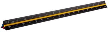 Linijka trójkątna 30cm NeoLinijka trójkątna NEO (nr ref. 72-205) długości 30 cm posiada znaczniki kolorystyczne wykonane z PCV. Wykonane z wysokiej jakości anodowego aluminium boki linijki oznaczone zostały kolorami w zależności od skali dla łatwego wyboru pożądanej skali: czerwony- skala 1:100; 1:200, niebieski- skala: 1:300; 1:400, żółty- skala 1:500; 1:600.