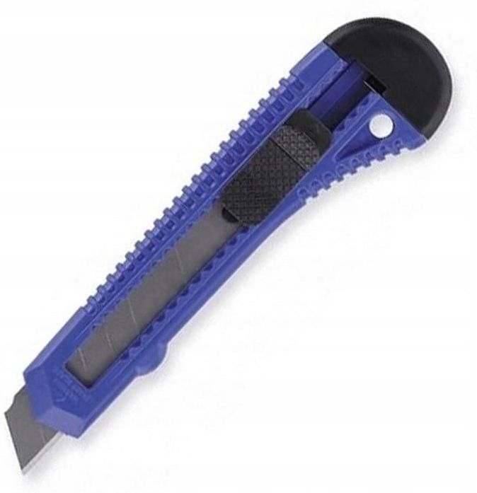Nóż uniwersalny duży Taurus do papieru, tapet, kopert. Zabezpieczony przyciskiem blokującym pozycję ostrza. Nożyki posiadają ostrza łamane, które zapewniają stałą i wysoką jakość krawędzi tnącej oraz dużą sztywność całego ostrza mimo jego segmentowej budowy. Noże tego typu idealnie nadają się do prac lekkich np. cięcie taśmy klejącej, papier, tekturę, karton, folię, tapety itp. Ostrze 18 mm.