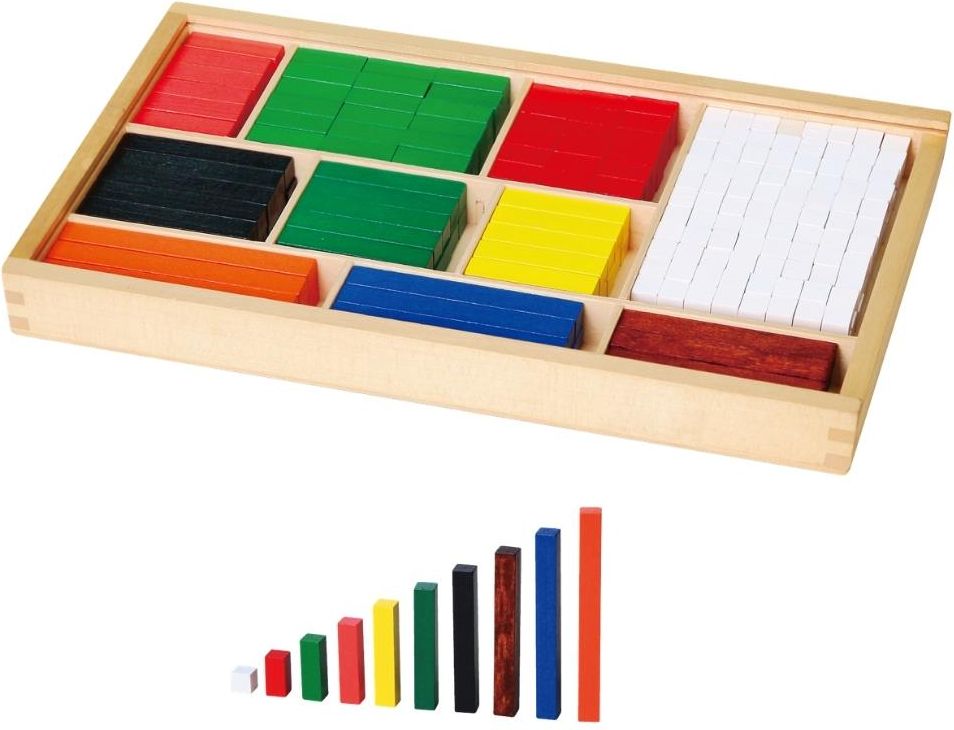 Dla kogo? Klocki Cuisenaire - 308 elementów to zestaw drewnianych prętów matematycznych w różnych kolorach i długościach, które w ciekawy i angażujący sposób zachęcą dzieci do poznania podstaw arytmetyki. Klocki Cuisenaire mogą być używane jako pomoc dydaktyczna do nauki podstawowych pojęć liczbowych, porównywania czy nauki rozpoznawania kolorów. Poprzez zabawę dziecko rozwija swoje zdolności matematyczne oraz zdolności manualne. Klockami mogą bawić się dzieci już od 3 roku życia. Dlaczego warto? Rozwój zdolności manualnych – budowanie z wykorzystaniem klocków Cuisenaire poprawia sprawność palców i rąk, co przygotowuje dzieci do nauki pisania. Rozwój umiejętności matematycznych - klocki Cuisenaire’a mogą być używane przy nauczaniu dodawania, odejmowania, mnożenia, dzielenia, ale również potęgowania, co w pozytywny sposób wpłynie na umiejętność liczenia dziecka. Rozwija wyobraźnię oraz kreatywność – dziecko może wykorzystać Klocki Cuisenaire do tworzenia konstrukcji, które tylko sobie wymarzy. Dzięki rozwiniętej kreatywności dziecko będzie miało lepsze wyniki w nauce i będzie chętniej podejmowało się nowych wyzwań. Ćwiczy koncentrację – podczas zabawy klockami dziecko skupia się tylko na budowaniu, izolując się na wszelkie zakłócenia, co pozwala zwiększyć efektywność nauki. Umiejętność koncentracji to efektywne wykonywania codziennych czynności. Kliknij w obrazek, aby sprawdzić jak można bawić się klockami Pozwala ćwiczyć myślenie przestrzenne – tworzenie budowli z klocków stymuluje rozwój inteligencji wizualno-przestrzennej, dzięki czemu dziecko będzie potrafiło kreatywnie radzić sobie z napotykanymi problemami i rozwiązywać je w sposób innowacyjny i skuteczny. Inteligencja przestrzenna pozwala dziecku w myślach dokonać rotacji przedmiotów, myśleć obrazami oraz tworzyć w umyśle różne wizerunki rzeczywistości. Nauka poprzez zabawę – układanie sekwencji z klocków zapewni dziecku sporo frajdy, a także w znaczący sposób przyczyni się do jego rozwoju. Co zawiera? Zestaw zawiera 308 kolorowych elementów, a także poręczne drewniane pudełko do przechowywania o rozmiarach 325 x 175 x 40 mm. Sprawdź inne pomoce dydaktyczne i zabawki edukacyjne.