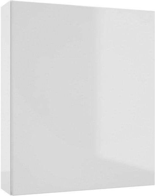 Szafka łazienkowa wisząca z drzwiami + lustro. Front mebla wykonano z wytrzymałej płyty MDF, natomiast korpus z wysokiej jakości płyty laminowanej. Korpus oraz fronty zostały precyzyjnie polakierowane od wewnątrz i od zewnątrz przy pomocy lakieru UVProtect, dzięki czemu cały mebel zyskał znakomitą odporność na promieniowanie słoneczne oraz warunki panujące w łazience. Fronty zostały zacięte pod kątem 45 stopni, dzięki czemu pełnią rolę wygodnych minimalistycznych uchwytów. Dwie półki szklane. Dwie regulowane zawieszki metalowe. Produkt do samodzielnego montażu. Kolor: biały połysk. 2-letnia gwarancja.