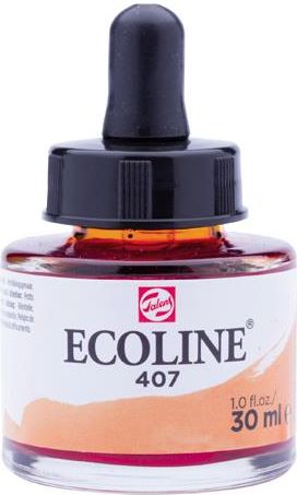 Talens Ecoline skoncentrowana farba akwarelowa w stanie płynnym pojemność: 30 ml kolor: 407 Deep Ochre odznacza się wspaniałą przyswajalnością do papieru akwarelowego, rysunkowego lub tektury Ecoline to wszechstronność w użyciu w połączeniu z różnego rodzaju materiałami; doskonale nadaje się do prac projektowych, do lawowania prace powinny być przechowywane z dala od światła aby zapobiec utracie kolorów doskonale sprawdza się w malarstwie akwarelowym, ale także w rysunku architektonicznym, i wszelkich technikach hobby znakomicie nadaje się do znakowania i pieczętowania produkowane 46 transparentnych kolorów oraz 2 kryjące (złoty i biały) opakowanie: kwadratowa zakręcana butelka produkt holenderskiej firmy Talens