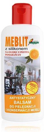 Meblit 150Ml Balsam D/Mebli-Pomarańcza /579 CHEM.SPÓŁDZ.INWALIDÓW "ARA" Balsam do mebli Meblit Pestki Pomarańczy 150 ml Balsam do mebli MEBLIT pozostawia powierzchnię błyszczącą, a specjalne składniki powodują, że kurz osadza się znacznie wolniej. To gęsty balsam, który znakomicie pielęgnuje i konserwuje meble drewniane oraz laminaty.Skuteczność bazy MEBLITU jest możliwa poprzez idealne dopasowanie do drewna dzięki zawartości wszystkich składników olejowych, które impregnują, zabezpieczają a nawet nadają preparatowi właściwości renowacyjnych.MEBLIT o zapachu pomarańczy pozostawia piękną woń olejku z pestek pomarańczy.Pojemność: 150 ml EAN: 5902865002579 Meblit 150Ml Balsam D/Mebli-Pomarańcza /579 CHEM.SPÓŁDZ.INWALIDÓW "ARA" 5902865002579 KT-PRM MEB150-03