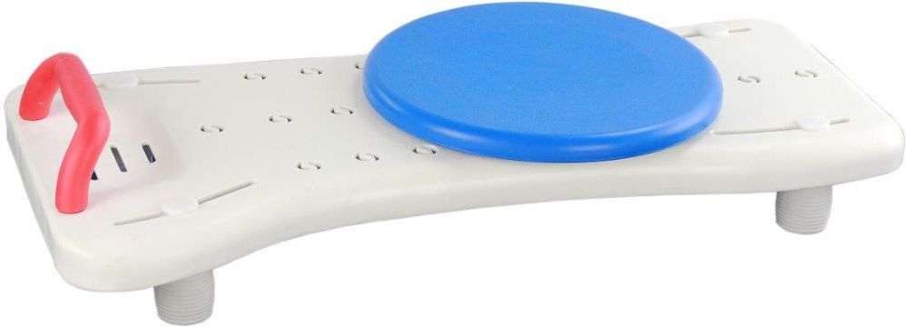 Ławka nawannowa z obrotowym dyskiem prosta pomoc podczas codziennych kąpieli. Przeznaczona jest dla osób z dysfunkcjami motorycznymi, którym przyjęcie standardowej pozycji podczas mycia sprawia kłopot. Ławka na wannę to nie tylko nowoczesny design, który idealnie wkomponuje się w wystrój łazienki. Ta ławka na wannę to przede wszystkim uniwersalna pomoc podczas zabiegów pielęgnacyjnych w wannie. Idealna do zastosowania w wannach o szerokości wewnętrznej pomiędzy 56 cm a 68 cm. Ławka na wannę wyposażona jest w funkcjonalny obrotowy dysk zapewniający możliwość obrotu użytkownika nawet o 360°. Dzięki temu ławka na wannę idealnie sprawdzi się podczas transportu pacjenta ponad brzegiem wanny. Wygodna i łatwa w obsłudze ławeczka na wannę pomagająca w codziennych kąpielach. Jej schemat działania jest niezmiernie prosty. Wystarczy jedynie, aby pacjent usiadł na poduszce obrotowej od zewnętrznej strony wanny. Następnym krokiem jest jedynie obrócenie go w stronę wnętrza wanny przy pomocy obrotowego dysku. I już można wziąć kąpiel lub prysznic. Doskonały pomocnik podczas pielęgnacji pacjentów o obniżonej sprawności ruchowej i będących w trakcie rehabilitacji. Z ławki na wannę z obrotowym dyskiem mogą korzystać wyłącznie osoby mające zachowaną zdolność poruszania się. To co wyróżnia tą ławkę wannową na tle innych to jej uniwersalność oraz łatwość w montażu, posiada ergonomiczny uchwyt i wgłębienie na kosmetyki, a dzięki obrotowemu dyskowi wspomoże osoby z osłabioną odpornością stawów podczas kąpieli. [picture_1102224 width="382" height="323"] Parametry techniczne: Długość: 72,8 cm Głębokość: 35,4 cm Wysokość: 7 cm Średnica dysku: 32,1 cm wew. szer wanny: 56 - 68 cm Waga: 1,6 kg Waga użytkownika: 136 kg INSTRUKCJA OBSŁUGI [picture_1102225 width="336" height="684"]