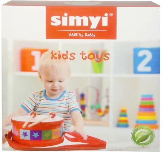 Bębenek dziecięcy z pałeczkami i paskiem do zawieszenia. Produkt zapakowany w kartonowe pudełko. Zabawka przeznaczona dla dzieci od 24 miesiąca życia. Podane wymiary są wymiarami opakowania.