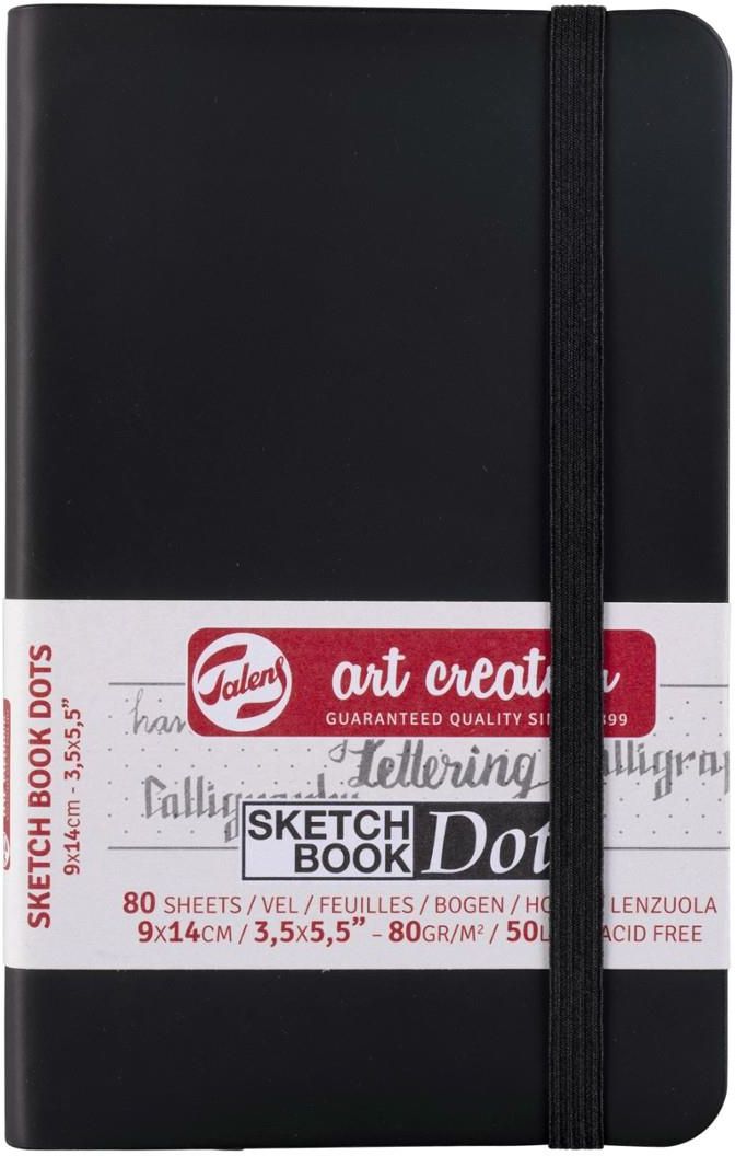 Szkicownik w kropki 9 x 14 cm - Talens Art - 80 k Szkicownik Art Creation z kremowym, bezkwasowym papierem z liniaturą w kropki. Sprawdzi się świetnie jako bullet journal. Nadaje się do wielu mediów, w tym ołówka, węgla drzewnego, grafitu, kredki i tuszu. Każdy szkicownik posiada lekko …