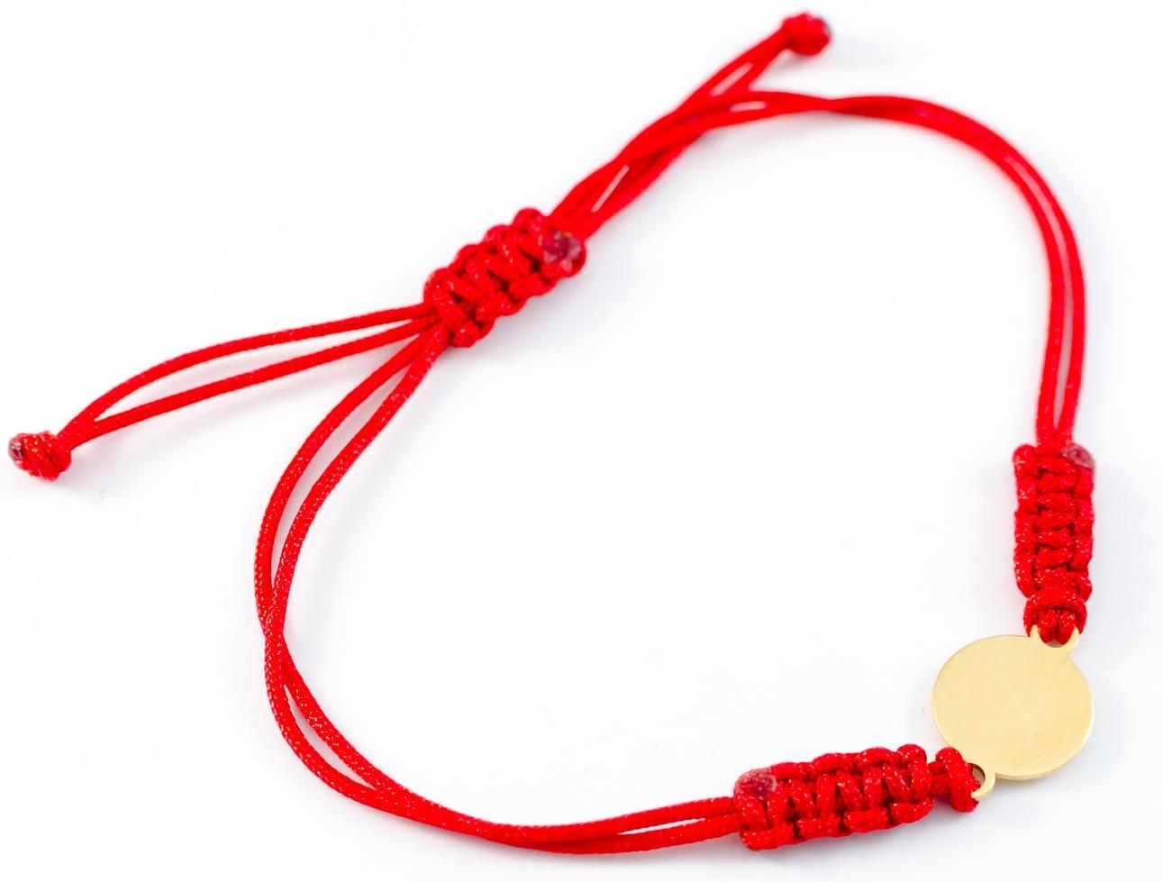 Bransoletka Damska Cordelle Moneta - Srebrna zawieszka (Próba 925) Pozłacana - Czerwony Rzemyk - BPZ-010 Brzostek