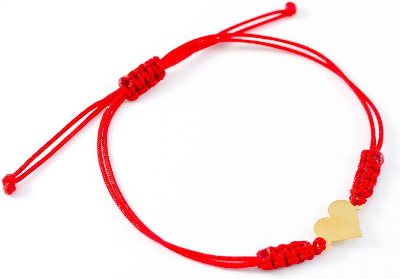 Bransoletka Damska Cordelle Serce - Srebrna zawieszka (Próba 925) Pozłacana - Czerwony Rzemyk - BPZ-009 Brzostek
