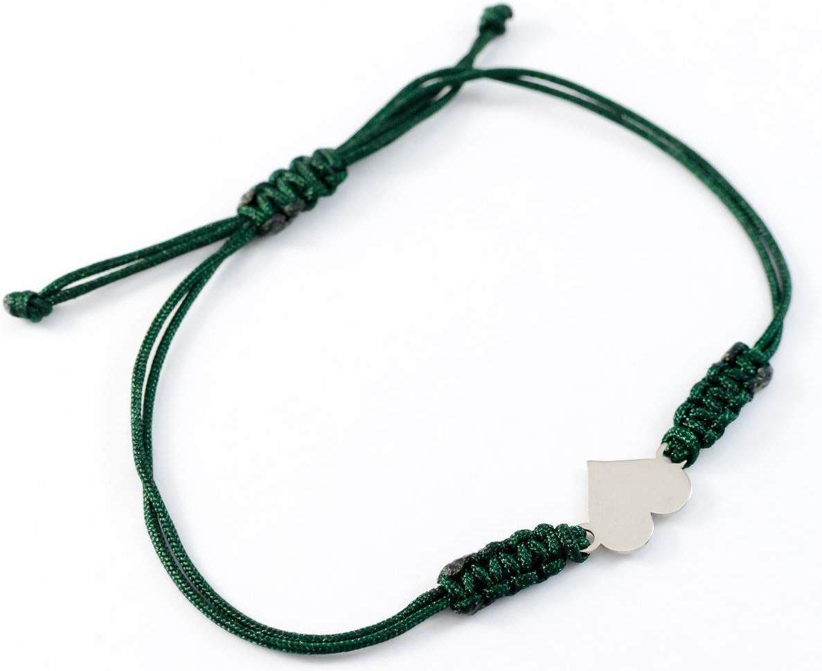 Bransoletka Damska Cordelle Serce - Srebrna zawieszka (Próba 925) - Zielony Rzemyk - BSR-039 Brzostek