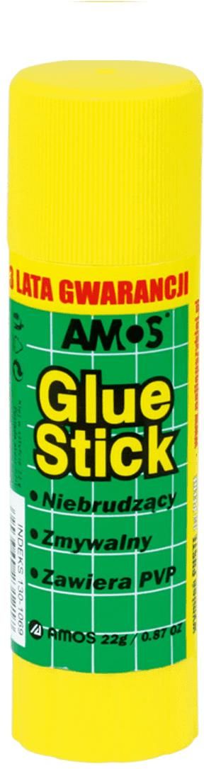Klej w sztyfcie AMOS - 22g Bezpieczny dla dzieci. Przydatny w domu, w pracy, w szkole. - niebrudzący - zmywalny - zawierający PVP