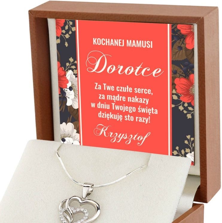 Parametry wisiorka srebro próba 925 (wybita próba) srebrny wisiorek z kryształkami: wymiary 15 mm x 15 mm waga wisiorka ok. 1,33 g Parametry łańcuszka srebro próby 925 długość: 50 cm grubość łańcuszka: 0,8 mm waga: ok. 1,97 g standardowy naszyjnik typu "żmijka" Naszyjnik zapakowany jest w brązowe pudełeczko. Całość odznacza się wysoką jakością. Personalizacji dokonamy przy pomocy metody druku UV. Personalizacja Aby w pełni spersonalizować produkt, prosimy o przesłanie potrzebnych danych na adres email, a nasi graficy zajmą się resztą :)