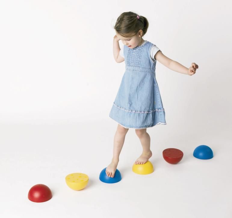 Kamienne półkule EMPIS "Kamienne półkule" to jeden z wariantów dobrze znanego przyrządu z powodzeniem wykorzystywanego do typowej stymulacji receptorów jak i do ćwiczeń związanych z równowagą lub koordynacją. Prezentowane półkule mogą być również używane do tworzenia torów przeszkód, slalomów lub ścieżek sensorycznych. "Kamienne półkule" wykonane są z bardzo trwałego i odpornego na uszkodzenia tworzywa sztucznego. Półkule mają twardą i gładką powierzchnię co oznacza, że nie uginają się pod naciskiem ćwiczącego dziecka. Można wykorzystywać je dwustronnie. Płaską i wypukłą stronę. Płaska strona posiada wypustki antypoślizgowe. Każda z półkul waży ok. 0,9 kg. Półkule sensoryczne nadają się do: ćwiczeń korekcyjnych stóp; masażu stóp, dłoni i w ograniczonym zakresie innych obszarów ciała; zabaw ruchowych i dydaktycznych; ćwiczeń rehabilitacyjnych; Kolory 2 szt. żółte, 2 szt. czerwone, 2 szt. niebieskie, Średnica: 15cm, wysokość: 8cm