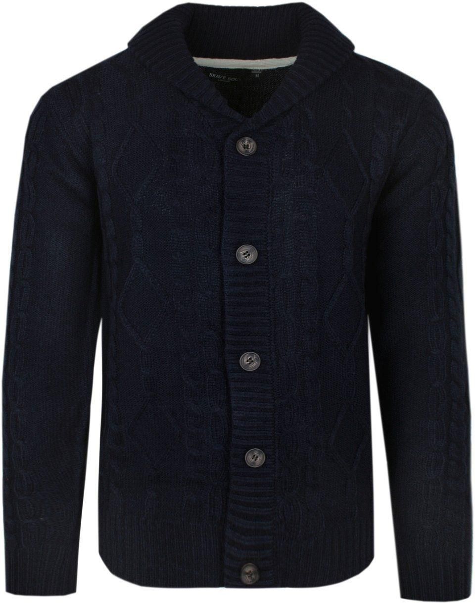 Modny dziergany sweter męski typu kardigan marki Brave Soul. Jest to konieczne uzupełnienie męskiej szafy ze względu na uniwersalny charakter. Dobrany z elegancką koszulą i krawatem jest przykładem niezobowiązującej elegancji (tzw. smart casual). Połączony z t-shirtem będzie z kolei wygodnym strojem weekendowym.