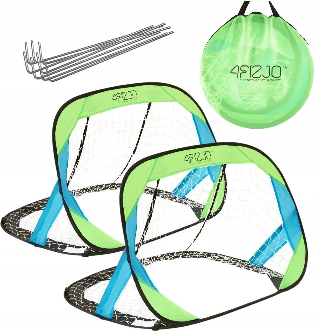 ZESTAW BRAMEK PIŁKARSKICH SAMOROZKŁADAJĄCY POP-UP DO PIŁKI NOŻNEJ 2 SZT. Składana bramka piłkarska do piłki nożnej POP-UP 4FIZJO zestaw 2 sztuk Chcesz, aby twoje dziecko jednocześnie miało świetną zabawę i aktywnie spędzało wolny czas z rówieśnikami na świeżym powietrzu? Może w przyszłości marzy mu się kariera zawodowego piłkarza? Świetnie się składa! Pomóż swojemu dziecku rozwinąć skrzydła z naszym zestawem dwóch samorozkładających się bramek piłkarskich dla dzieci 4FIZJO! Chcesz dowiedzieć się więcej o zaletach i zastosowaniu tego mini sprzętu sportowego? Koniecznie zapoznaj się z poniższym opisem! Mini bramka do piłki nożnej dla dzieci 4FIZJO Składana treningowa bramka do gry w piłkę nożną POP-UP 4FIZJO to idealne rozwiązanie dla małych zawodników piłkarskich. Zapoznaj się z cechami produktu, aby wybrać odpowiedni model do potrzeb twojego dziecka! Rodzaj: dla dzieci Sposób rozkładania: POP-UP, samorozkładający Parametry Kolor: zielony, niebieski Materiał: 100% poliester Stelaż: włókno szklane Wymiary po rozłożeniu: 120 × 86 x 74 cm Wymiary przed rozłożeniem: 40 × 3 cm Waga: ok. 1 kg W zestawie: 2 bramki samorozkładające, torba do przechowywania, 8 śledzi, 4 rurki stelażowe Zalety piłkarskich bramek dla dzieci POP-UP Składana bramka piłkarska dla dzieci typu POP-UP wyróżnia się samorozkładającą konstrukcją. Produkt jest lekki, poręczny i kompaktowych rozmiarów, co zapewnia jego wygodny transport i przechowywanie. Mini bramka z siatką została wyprodukowana z wytrzymałego poliestru. Konstrukcję elastycznego stelaża wykonano z włókna szklanego. Do zestawu dołączone są elementy usztywniające – rurki stelażowe iśledzie. Zapewniają stabilne mocowanie do podłoża. Kiedy i gdzie korzystać z małej bramki piłkarskiej z siatką? Samorozkładające się bramki piłkarskie dla dzieci od 4FIZJO to mini wersje profesjonalnych bramek do piłki nożnej. Dzięki swoim niewielkim rozmiarom twoje pociechy mogą trenować w dowolnym miejscu – zarówno w domu, jak i na dworze. Gra w piłkę to frajda i radość ze wspólnej zabawy, a przenośna bramka umożliwi w przyjemny sposób rozwinąć talent piłkarski w każdym miejscu. Z przenośnej bramki do piłki nożnej dla dzieci można korzystać: na plaży w parku na placu zabaw w ogrodzie lub na tarasie na boisku szkolnym na sali gimnastycznej
