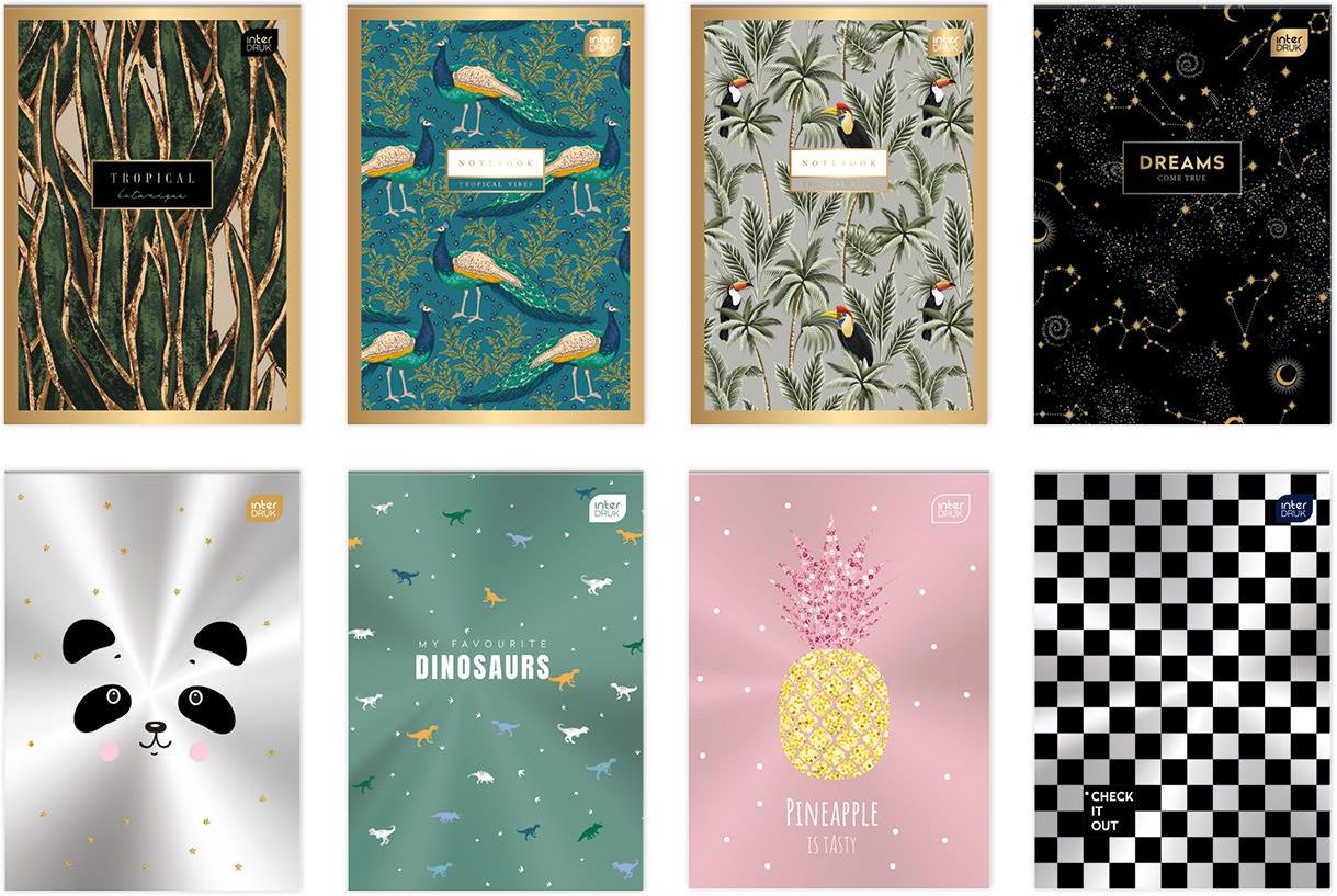 Format: A6. Liczba kartek: 100. Zadruk w kratkę. Okładka z tektury, pokryta lakierem UV. Klejony po krótkim boku. Okładka z metalicznym efektem. Jeżeli preferujesz konkretny wzór, napisz jaki w opisie zamówienia. Jeśli nie będzie dostępny wybierzemy inną wersję.