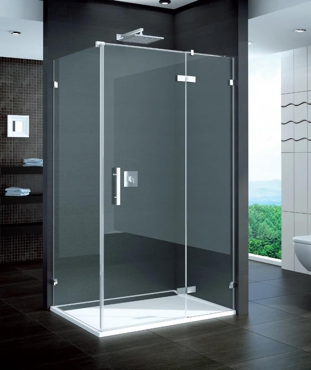 Drzwi szerokość do 160 cm (drzwi + element stały), prawe, otwierane na zewnątrz. Szerokość części ruchomej do 90 cm. Wysokość 200 cm. Montaż z profilem przyściennym. Zawiasy z funkcją unoszenia. Szkło z powłoką AQUA-PERLE która powoduje, że woda ściekająca po tafli szkła łatwiej spływa i nie …