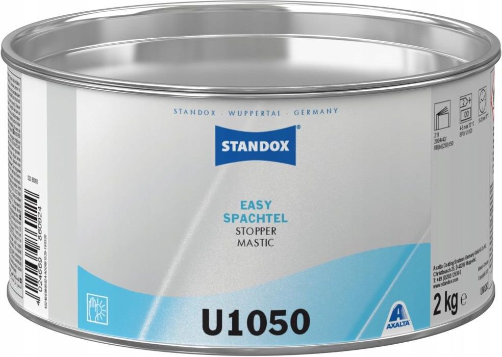 STANDOX SZPACHLA EASY U1050 UNIWERSALNA 2KG w zestawie z utwardzaczem Standox Easy Putty U1050 to uniwersalna drobno- i gruboziarnista szpachla poliestrowa o bardzo dobrej stabilności na powierzchniach pionowych. WŁAŚCIWOŚCI Możliwość wypełniania drobnych uszkodzeń. Dobra stabilność na powierzchniach pionowych. Łatwe szlifowanie. Uniwersalna drobno- i gruboziarnista szpachla poliestrowa.