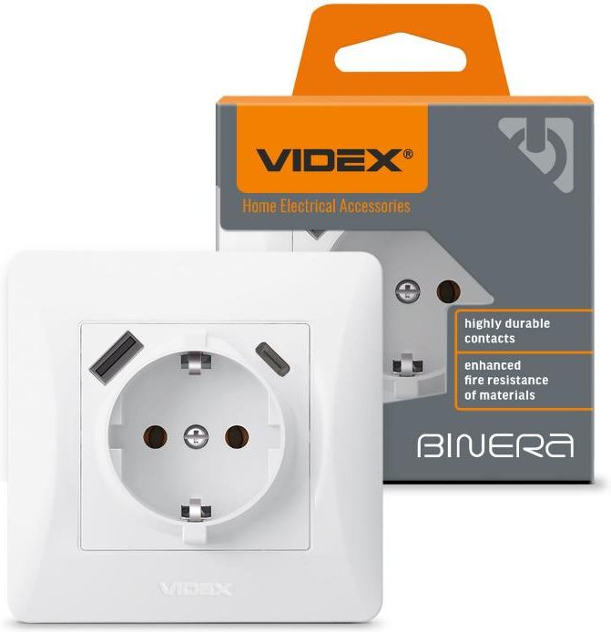 Videx Gniazdko Pojedynczne Z Usb-A+Usb-C Natynkowy Biały Binera Brzostek