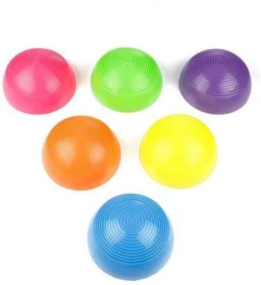 Zabawa z kolorowymi półkulami pozwala rozwinąć zmysł równowagi oraz koordynację. Produkt znakomicie sprawdzi się zarówno na sali gimnastycznej jak i na świeżym powietrzu.