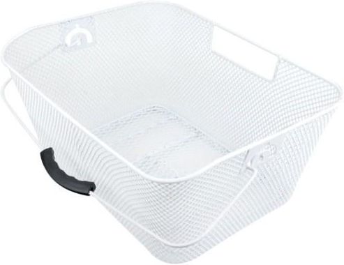 Pojemny, biały, tylny koszyk rowerowy Koszyk wykonany z powlekanej, metalowej siatki, Zakładany na bagażnik, Bardzo pojemny, Przez klasyczne mocowanie pasuje do wiekszości rowerów, W zestawie wygodny uchwyt pozwalający na wzięcie koszyka na np. zakupy, piknik, Długość: 30,5 cm, Szerokość: 40 cm, Wysokość: 18 cm, Waga: 730 g, UWAGA! Kosze mogą posiadać drobne odpryski farby powstałe w trakcie produkcji.