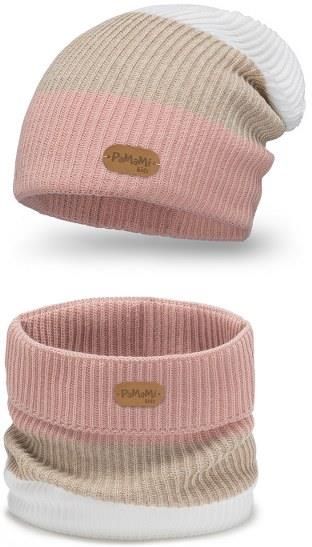 Komplet Dziecięcy PaMaMi Czapka Komin Różowy Brzozów