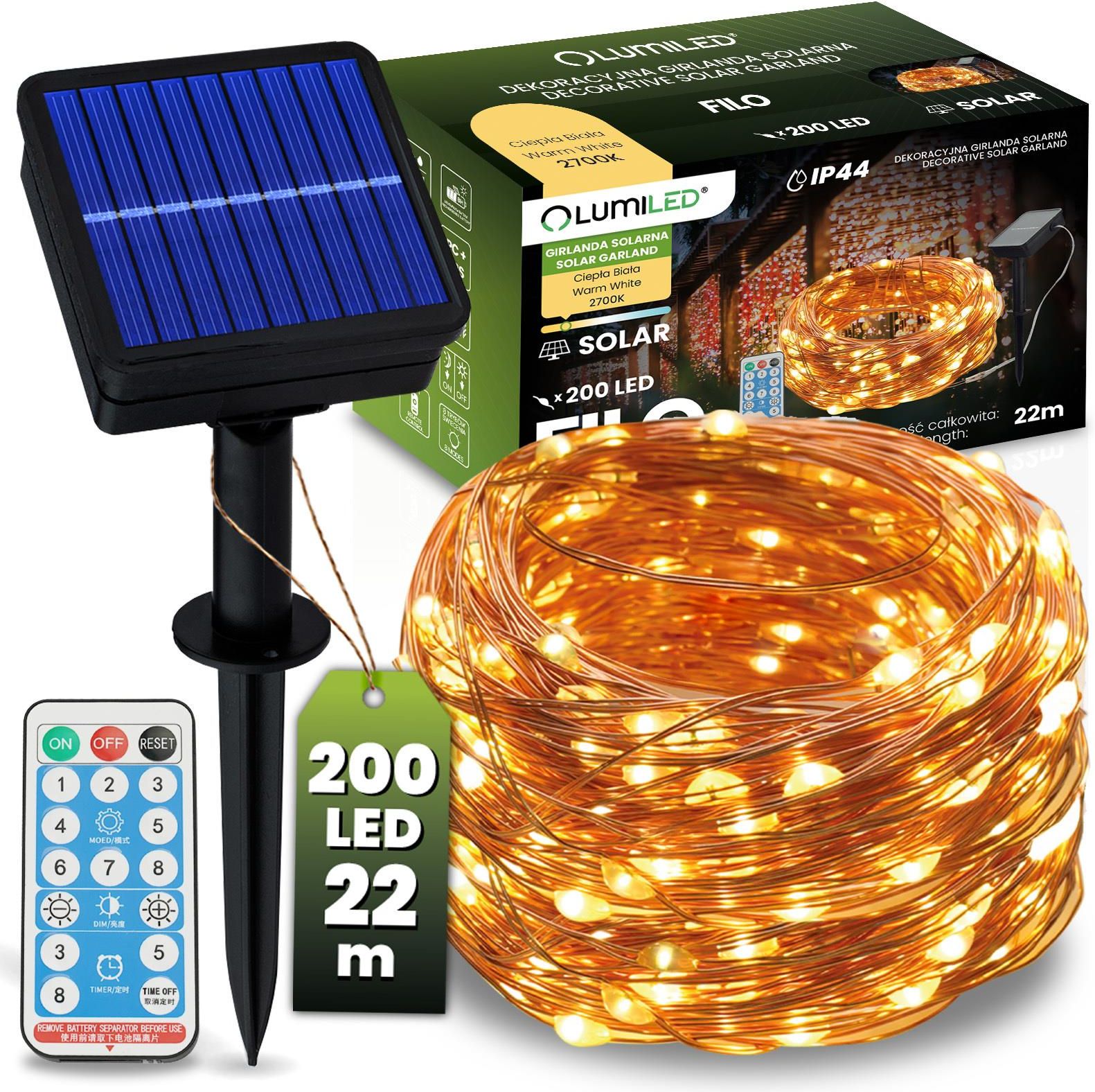 Lumiled Girlanda Solarna Ogrodowa 200 Led Ozdobne Druciki 22M 3000K + Pilot Filo Brzozów