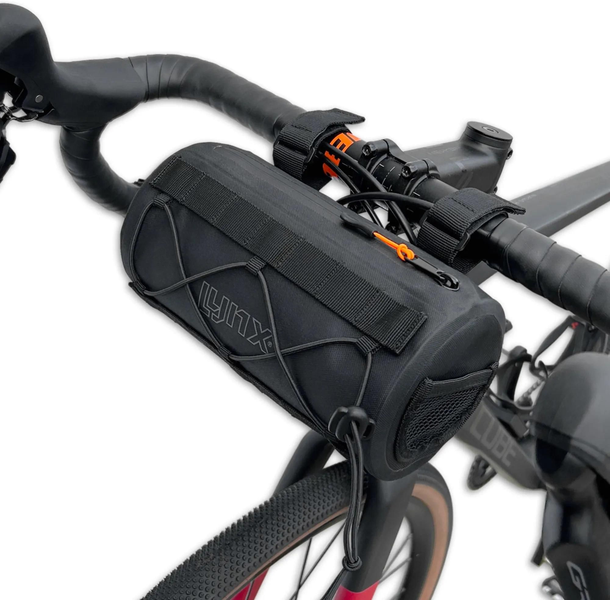 Wodoodporny materiał z uszczelnionym zamkiem Dodatkowe miejsce na bagaż dzięki elastycznemu ściągaczowi i bocznym kieszeniom Stabilne mocowanie do kierownicy i dolnego punktu podparcia