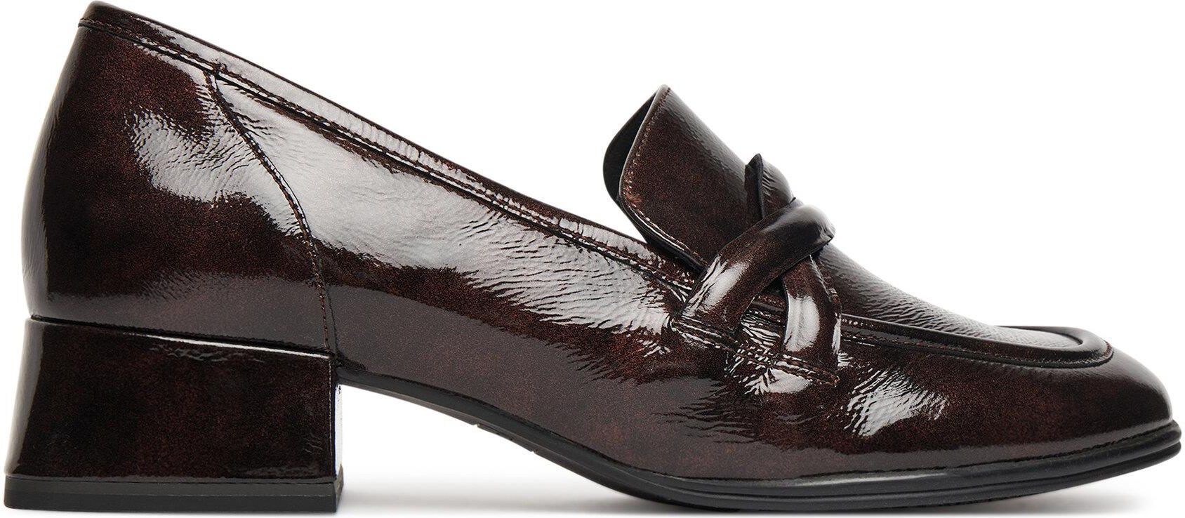 Lakierowane półbuty damskie na obcasie Caprice 24302 bordowe r38,5 Caprice Bordowe lakierowane mokasyny damskie na niskim obcasie, wykonane z naturalnej skóry. Bordowe lakierowane mokasyny damskie Bordowe półbuty damskie marki Caprice to elegancki wybór dla kobiet ceniących komfort i styl. Cholewka …
