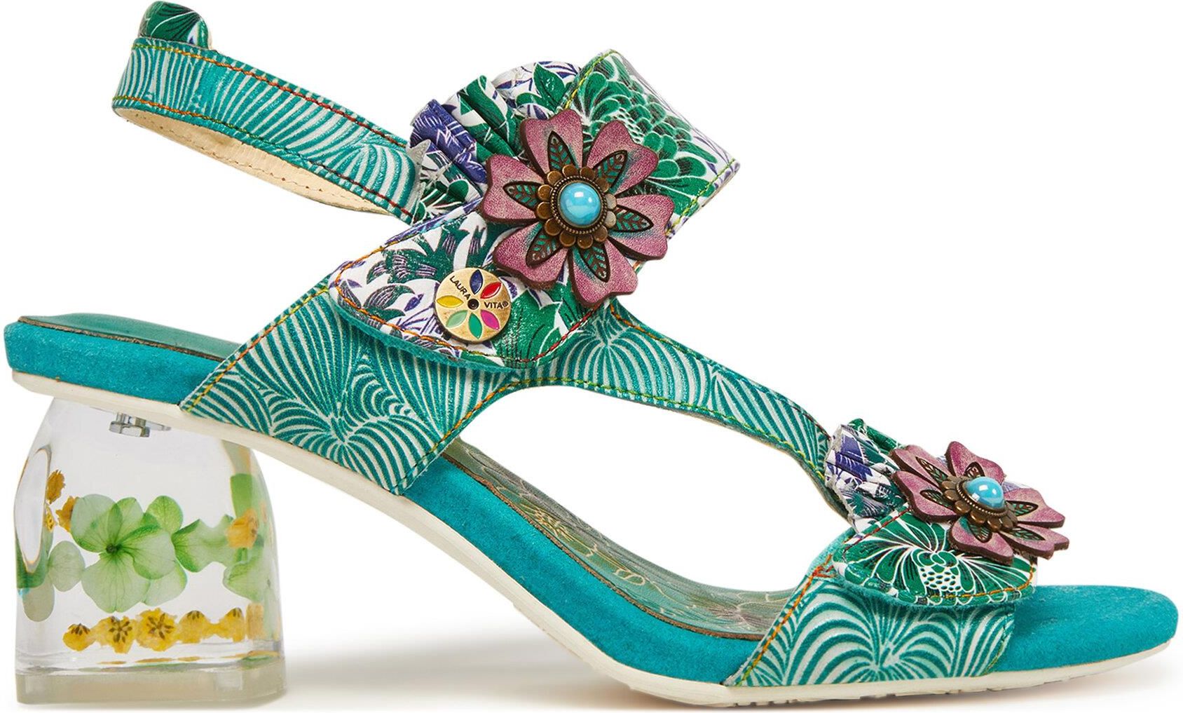 Sandały Laura Vita w zielonym kolorze to propozycja dla kobiet, które cenią sobie wygodę i oryginalny styl. Wykonane z wysokiej jakości skóry naturalnej licowej, gwarantują trwałość i elegancki wygląd. Stabilny obcas typu słupek zapewnia komfort noszenia i dodaje sylwetce subtelnej wysokości, co czyni je idealnym wyborem na co dzień i na specjalne okazje. Te wyjątkowe sandały z łatwością wkomponują się w letnie stylizacje, dodając im wyrazistości i charakteru. Pokochasz je za ich niepowtarzalny design!