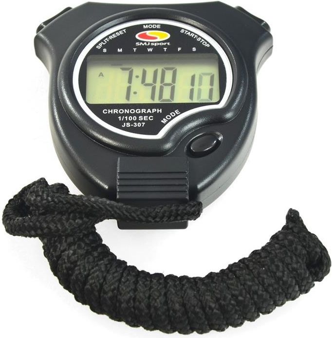 Stoper sportowy elektroniczny SMJ JS-307 z alarmem Stoper elektroniczny SMJ Sport model JS-307 Godzina, minuty, sekundy i dzień tygodnia. Miesiąc i data. Stoper z dokładnością do 1/100 sekundy, kontrola czasów okrążenia/ międzyczasów Kalendarz na 4 lata. Sygnalizacja dźwiękowa, alarm dźwiękowy z melodyjką i funkcją drzemki. 30-sekundowa korekta synchronizacji. Wyświetlanie godziny w formacie 12 lub 24 godzin wedle wyboru użytkownika. Maksymalny czas odliczania: 23 godziny 59 minut 59 sekund. Zasilanie: bateria LR44 Stoper elektroniczny SMJ Sport model JS-307 z alarmem, stoperem z dokładnością do 1/100 sekundy, kontrolą czasów okrążenia.